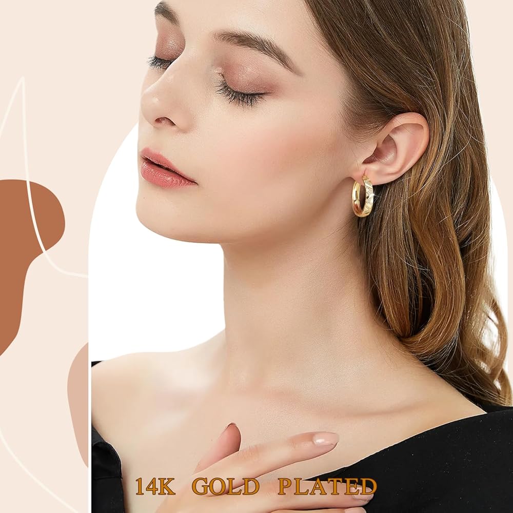 【إغلاق خفيف الوزن وآمن - راحة طوال اليوم】 لا مزيد من الأطواق الثقيلة التي تدمر يومك! تزن أقراطنا الحلقية خفيفة الوزن 9.88 جرام/زوج فقط، لذلك بالكاد تشعر بها حتى بعد أكثر من 8 ساعات. من السهل ربط قفل النقر المفصلي القوي ولن ينزلق - ارتدي هذه الأقراط المطلية بالذهب الحقيقي عيار 14 قيراط التي تحبها النساء وتنطلق!