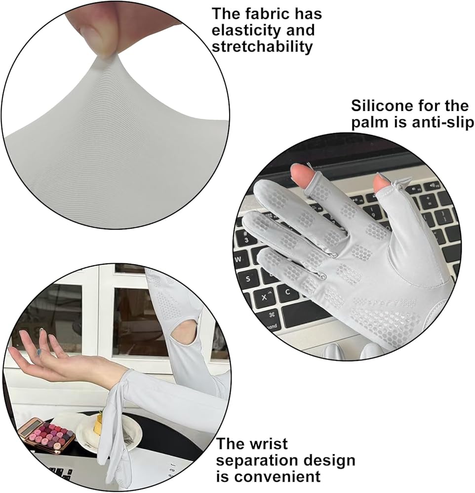 شاشة تعمل باللمس مضادة للانزلاق: تسمح قفازات الأشعة فوق البنفسجية هذه برفع الغطاء الصغير بين إصبع واحد لاستخدام الأجهزة الإلكترونية. عند ارتداء القفازات الصيفية، يمكن إجراء عملية شاشة اللمس. كما تم تصميم راحة اليد بجزيئات السيليكون لأغراض مضادة للانزلاق، مما يوفر مستوى معينًا من القبضة أثناء ركوب الدراجات والقيادة والجري وغيرها من الألعاب الرياضية.