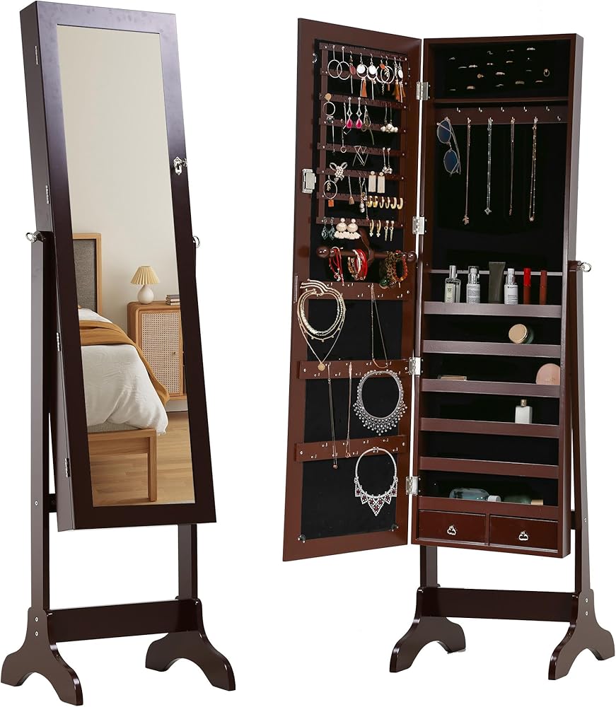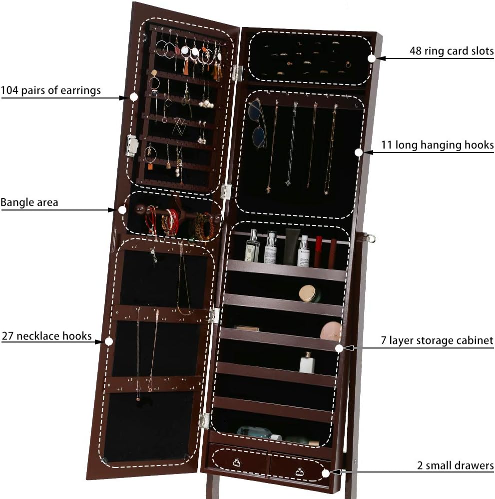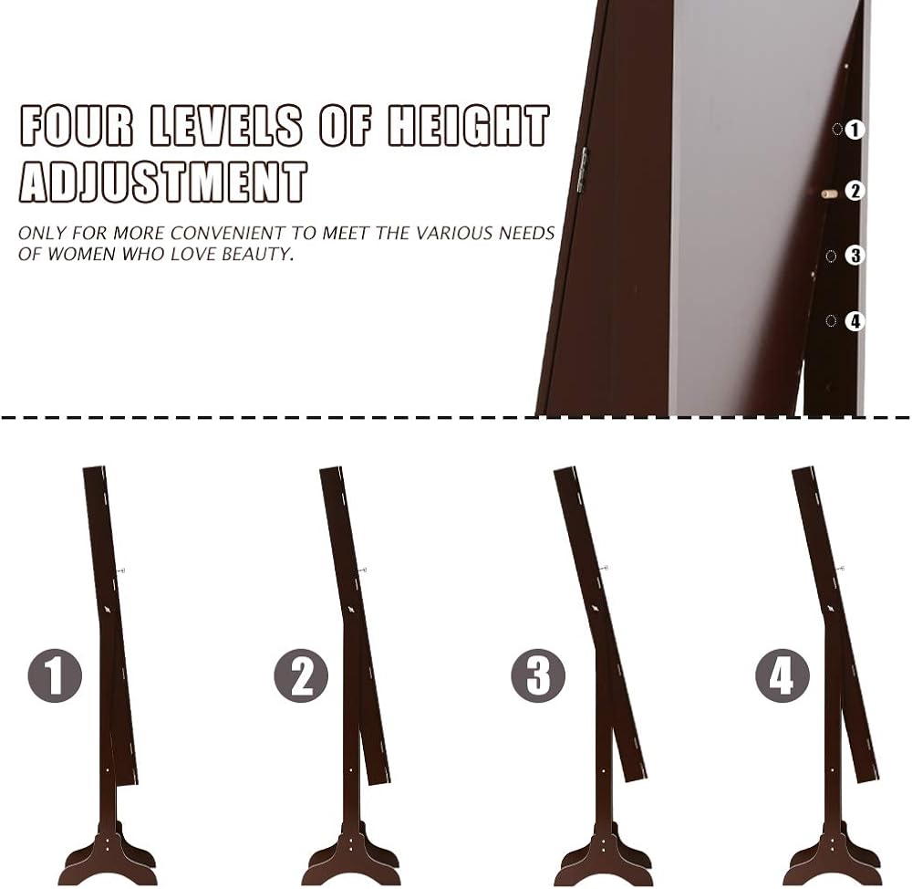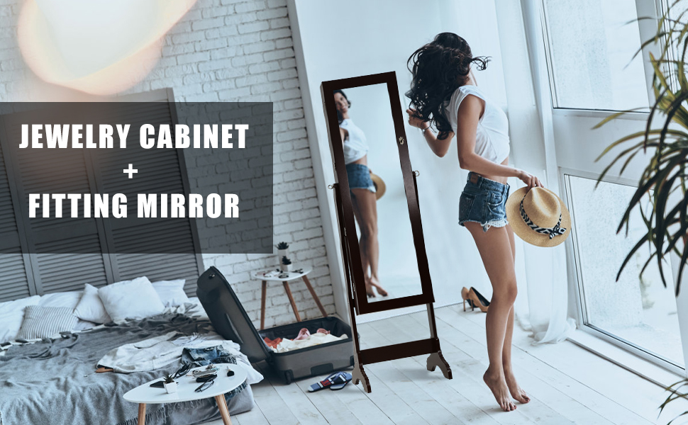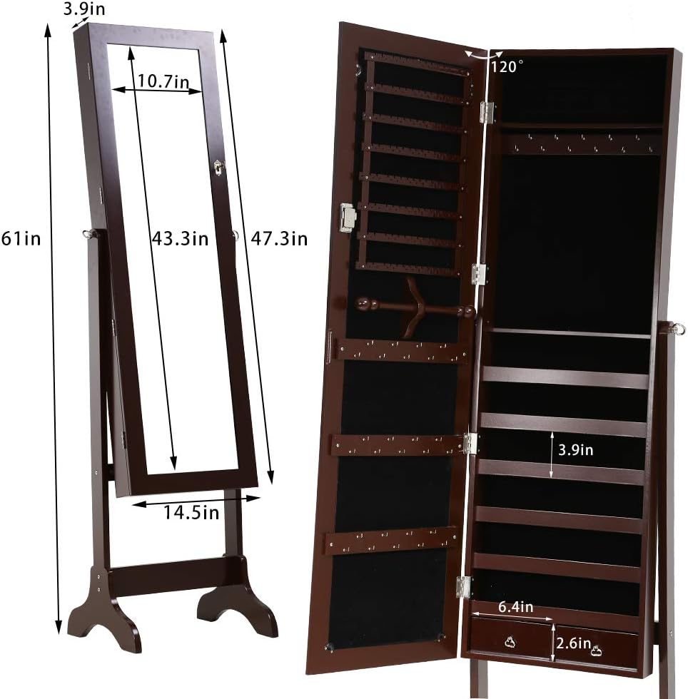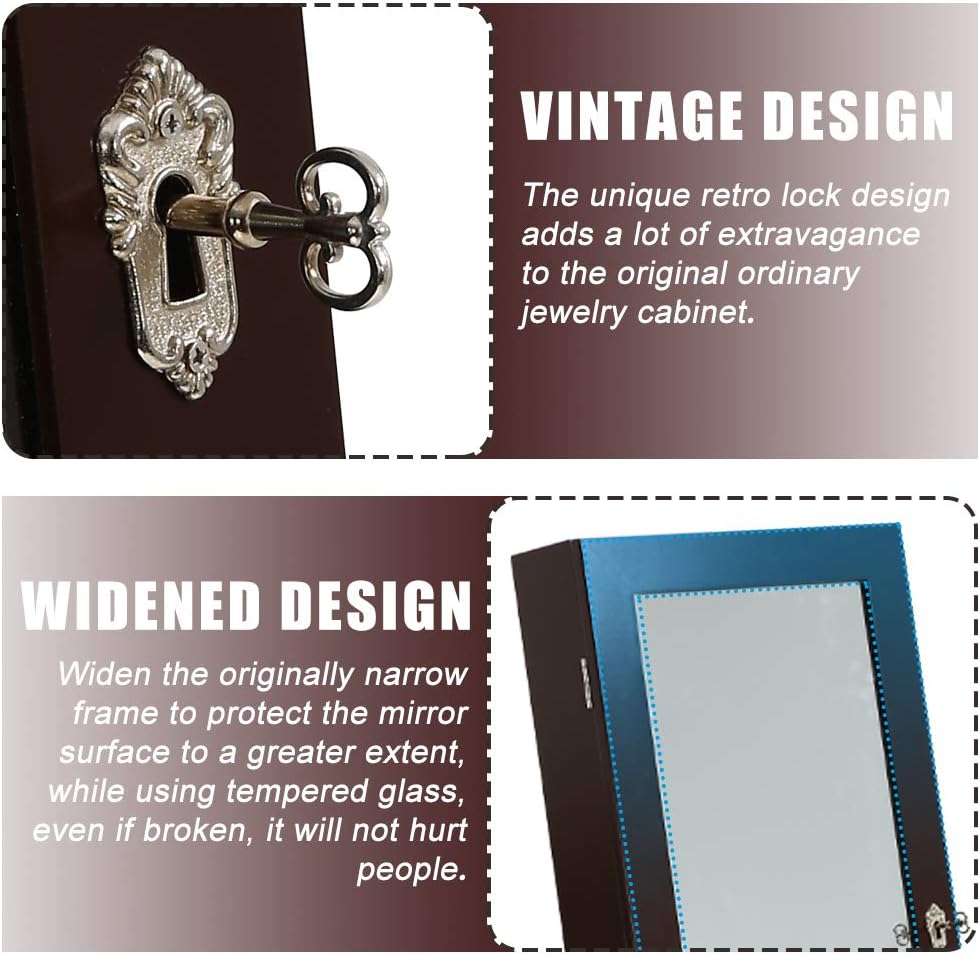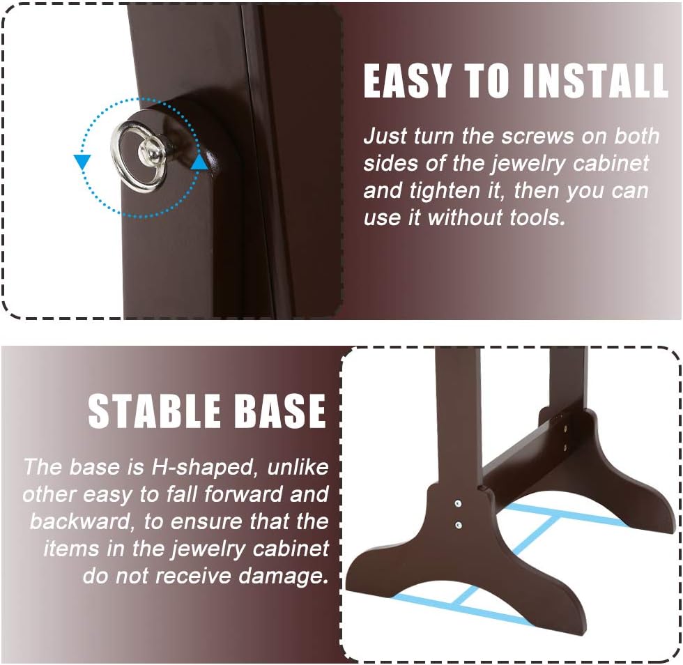 ☀43.3 "× 10.6" Mirror Glass: You can try on different clothes and wear different jewelry through the mirror that comes with the jewelry cabinet. The large-size mirror is enough for you to see the whole body for your confident