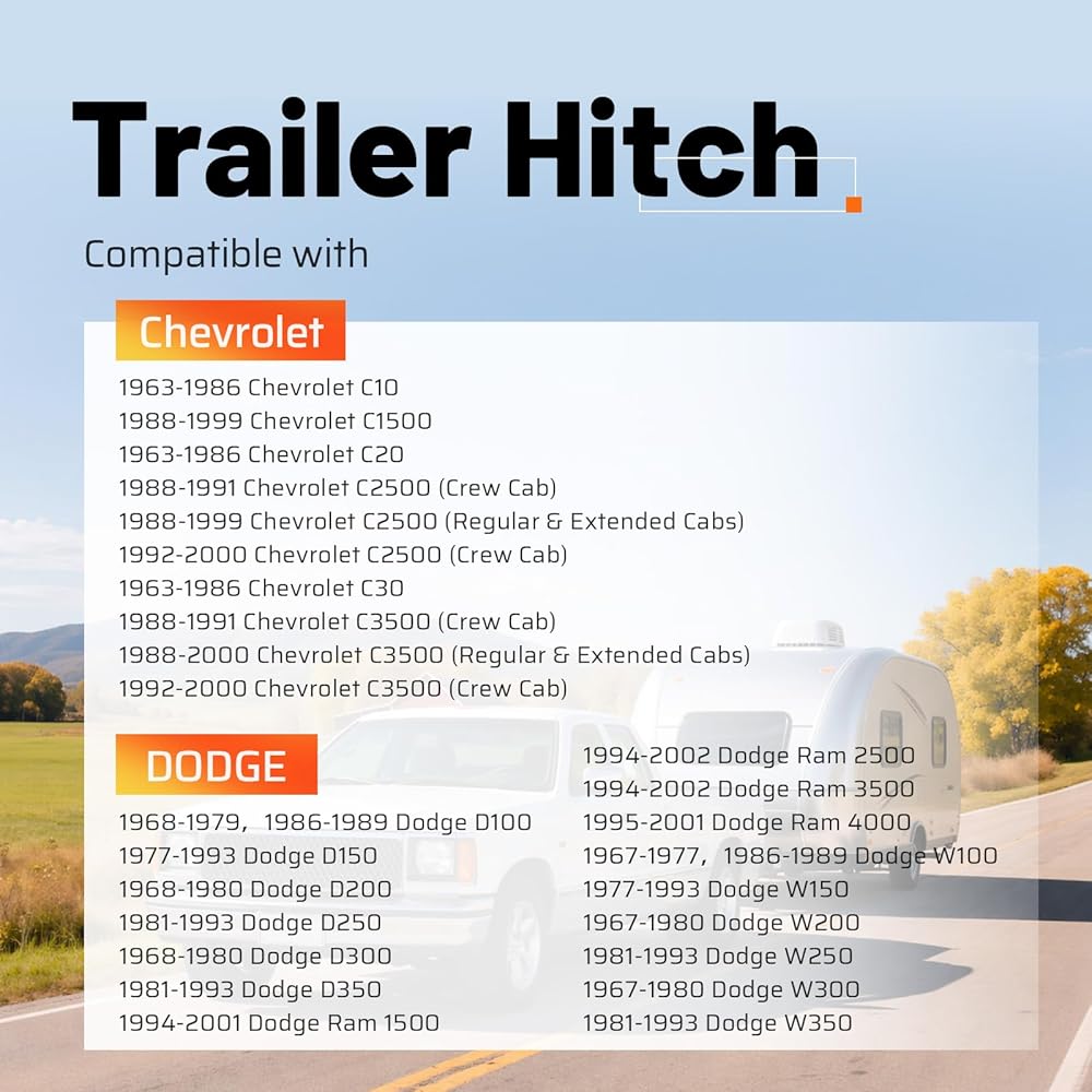 • الإعداد: جهاز استقبال وصلة المقطورة من الفئة 3 متوافق مع 1963-2002 شيفروليه دودج فورد جي إم سي