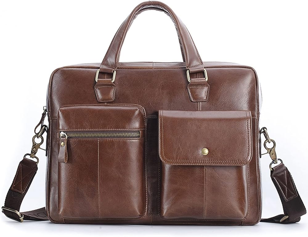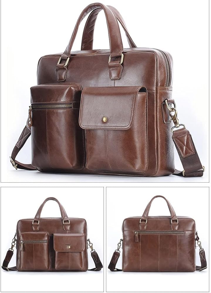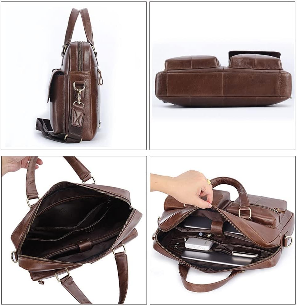 • *High quality: Men's briefcases are made of genuine leather (oil wax leather), the leather is soft, flexible and elastic, comfortable to the hand, natural texture, clearly visible, retains the original texture of the leather, not only has a good hand feel, but also durable.