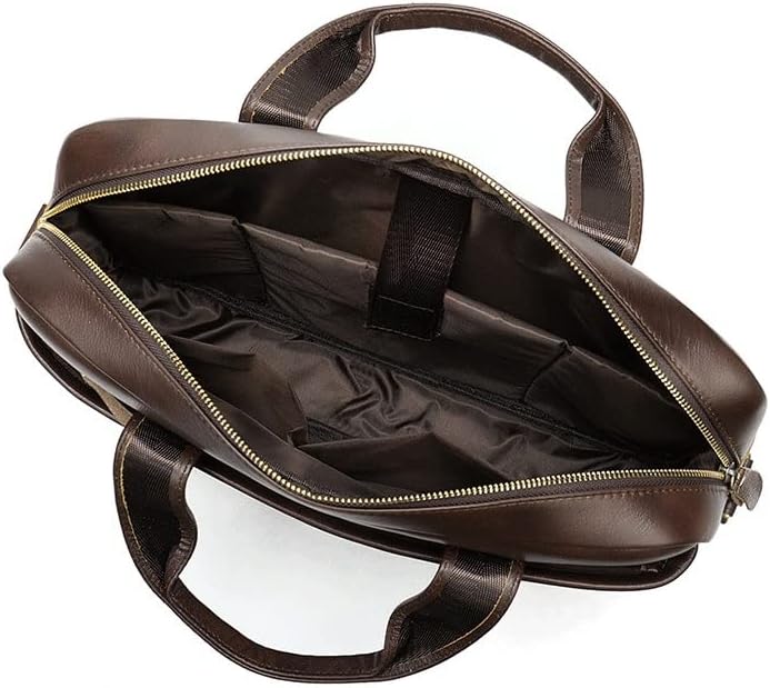15'' Leather Laptop Work Bag Office Business Briefcase Messenger for Men(Black)