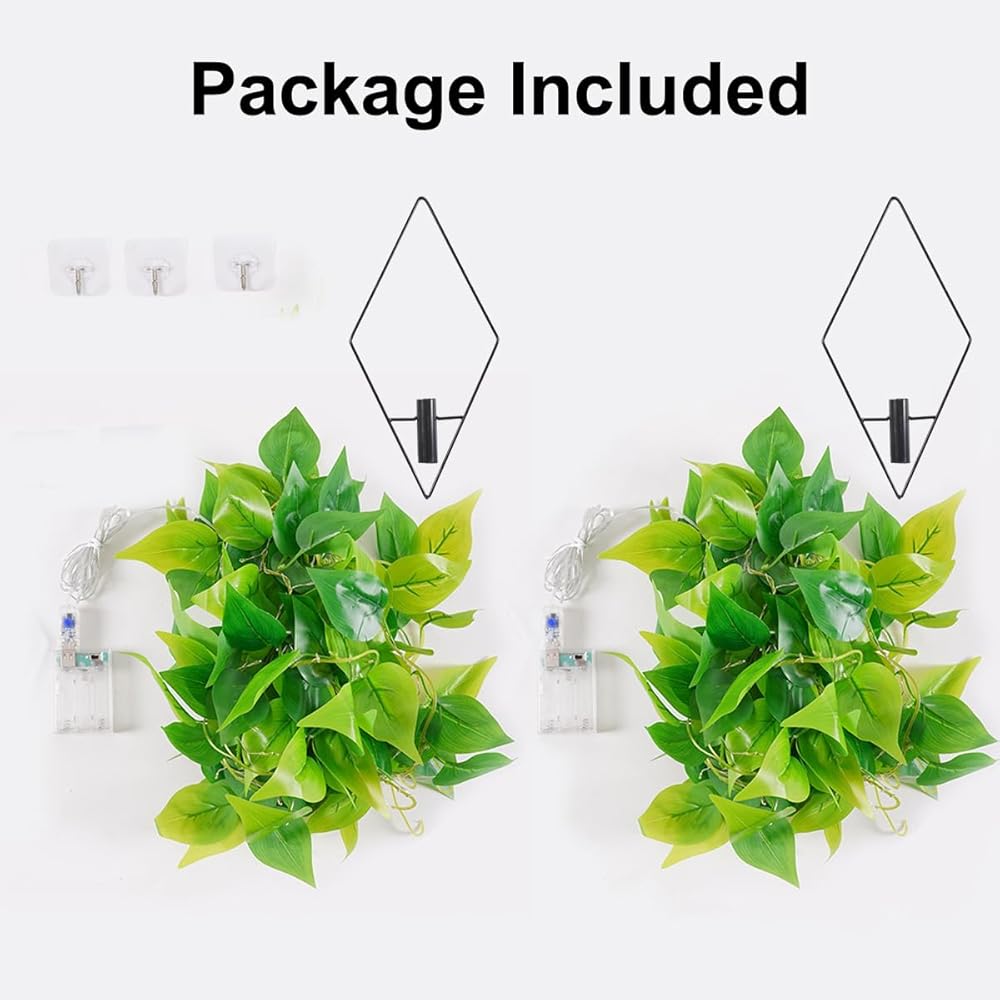 [لبلاب مزيف مع سلسلة أضواء] مجموعتان كاملتان من النباتات الاصطناعية المعلقة مع نباتين صناعيين بطول 3.4 قدم تقريبًا، وخطافين نباتيين في مجموعة. تحتوي كل مجموعة على 100 مصباح LED. يمكنك صنع الأضواء والنباتات المزيفة بنفسك كما تريد.