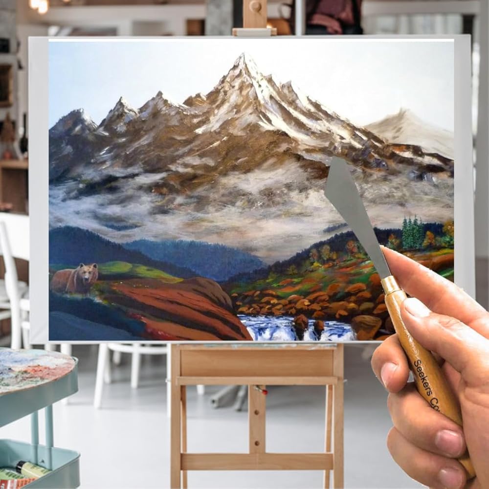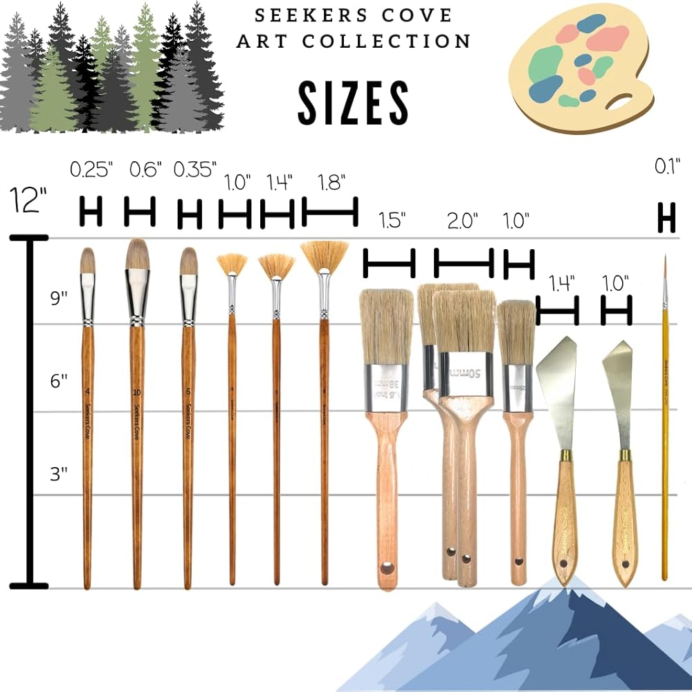 مجموعة فُرش رسم احترافية مكونة من 13 قطعة - مجموعة فرش المناظر الطبيعية - مبللة على الرطب - فرشاة مزج مقاس 1، 1.5، 2 بوصة، ومروحة، وفلبرت، وسكاكين، وقلم تحديد رفيع - شعيرات طبيعية - زيت وأكريليك