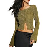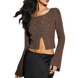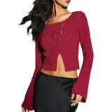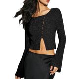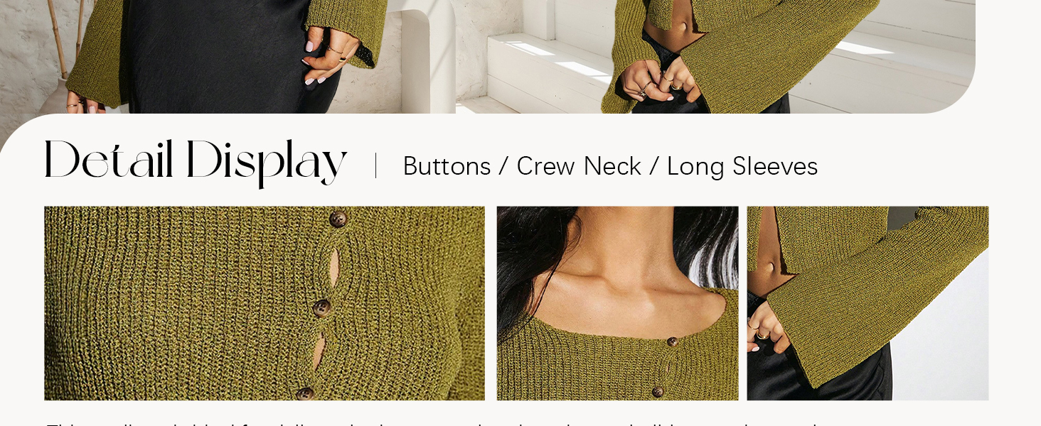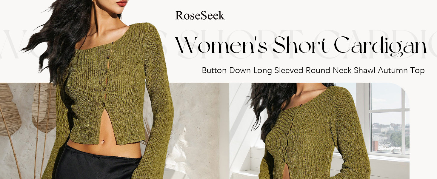 • المزايا: سترات كارديجان قصيرة للسيدات، أزرار أمامية، رقبة واسعة، أكمام طويلة، مقاس نحيف، محبوك، مقسوم