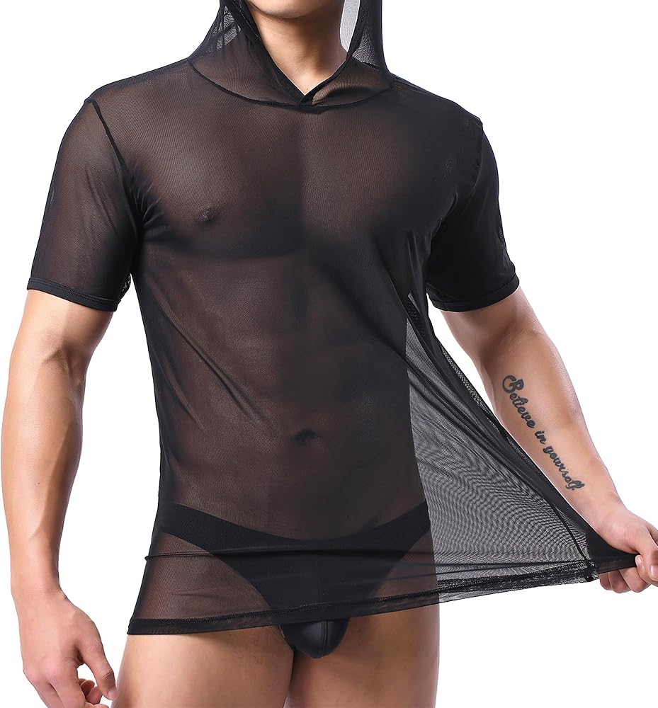 -Men's Mesh Sheer Hooded Tops–accentuates your physical appeal!
