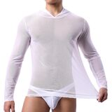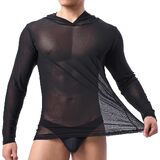 Men's Mesh Sheer Hooded Long Sleeve Top