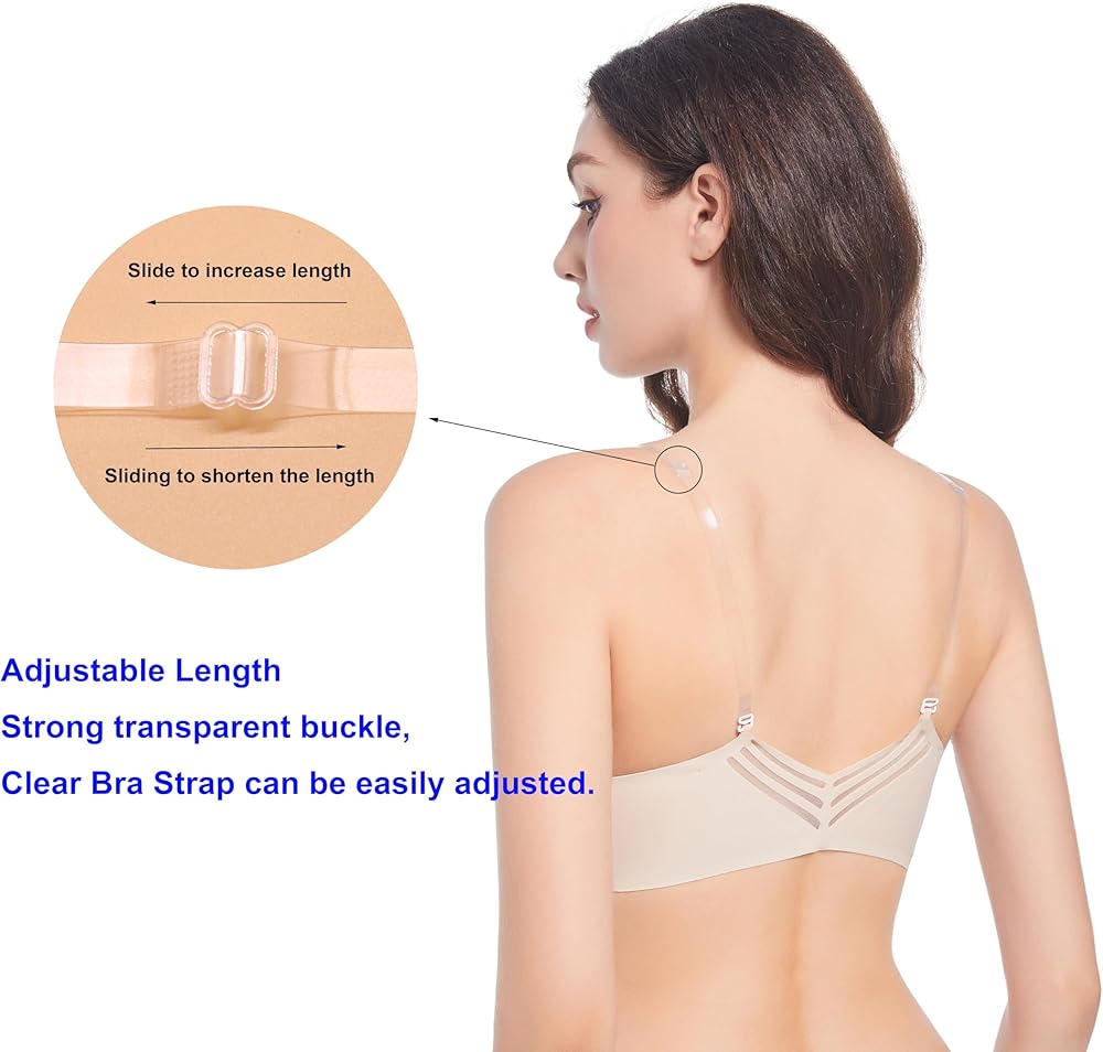 أشرطة حمالة صدر شفافة، 4 أزواج من أشرطة الكتف غير المرئية القابلة للتعديل، حزام كتف شفاف ناعم غير قابل للانزلاق