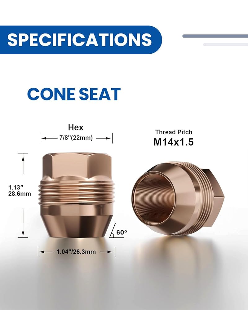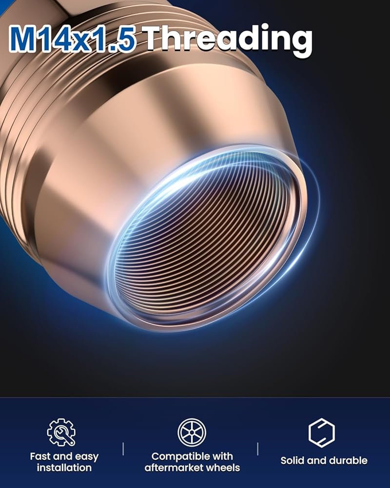 Features - The solid one-piece design is safer than the "cap" design. Our Golden lug Nut are made of high-quality steel. After Four-layer plating and 72 hours of salt spray test, apply anti-rust oil. Not easy to rust and fade