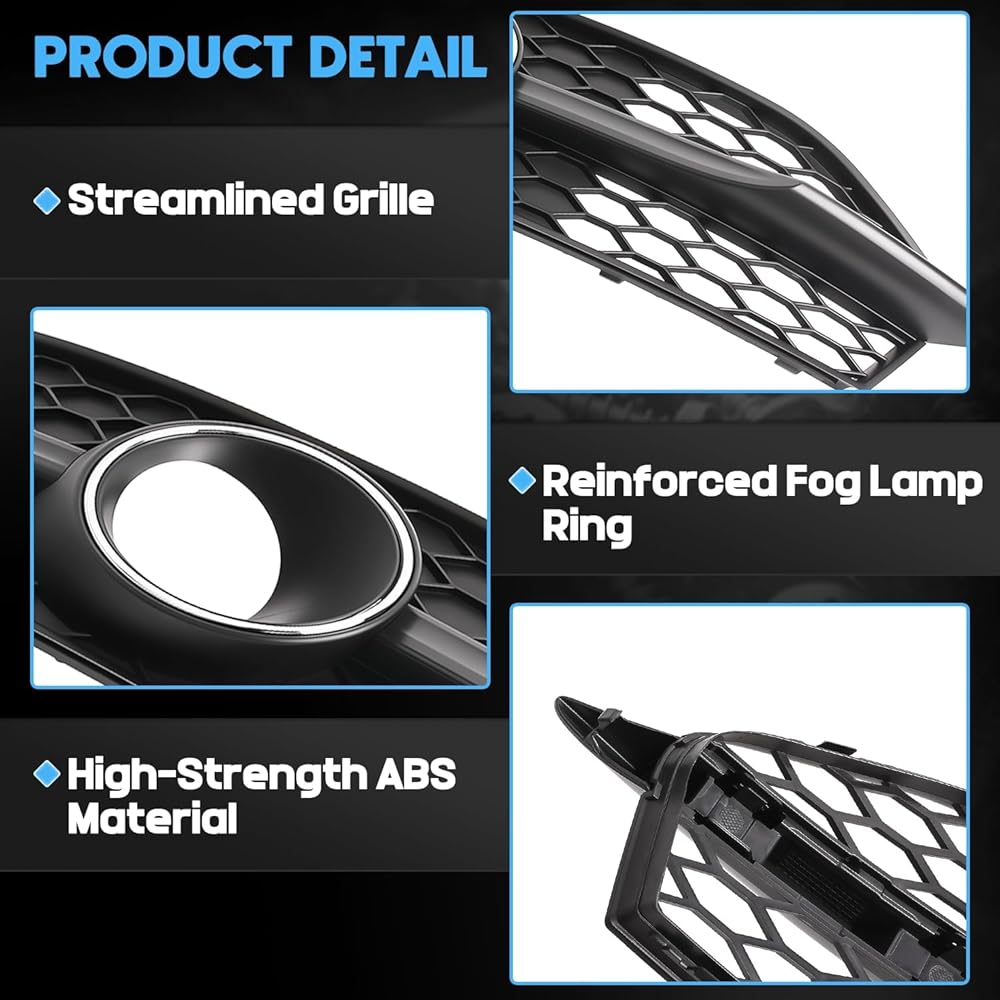 【Premium Material】Made from durable, weather-resistant material, this fog light grille cover helps improve airflow and cooling efficiency while maintaining its shape over time. The sleek, contoured design reduces drag and adds a refined, sporty look that complements your vehicle's front end.