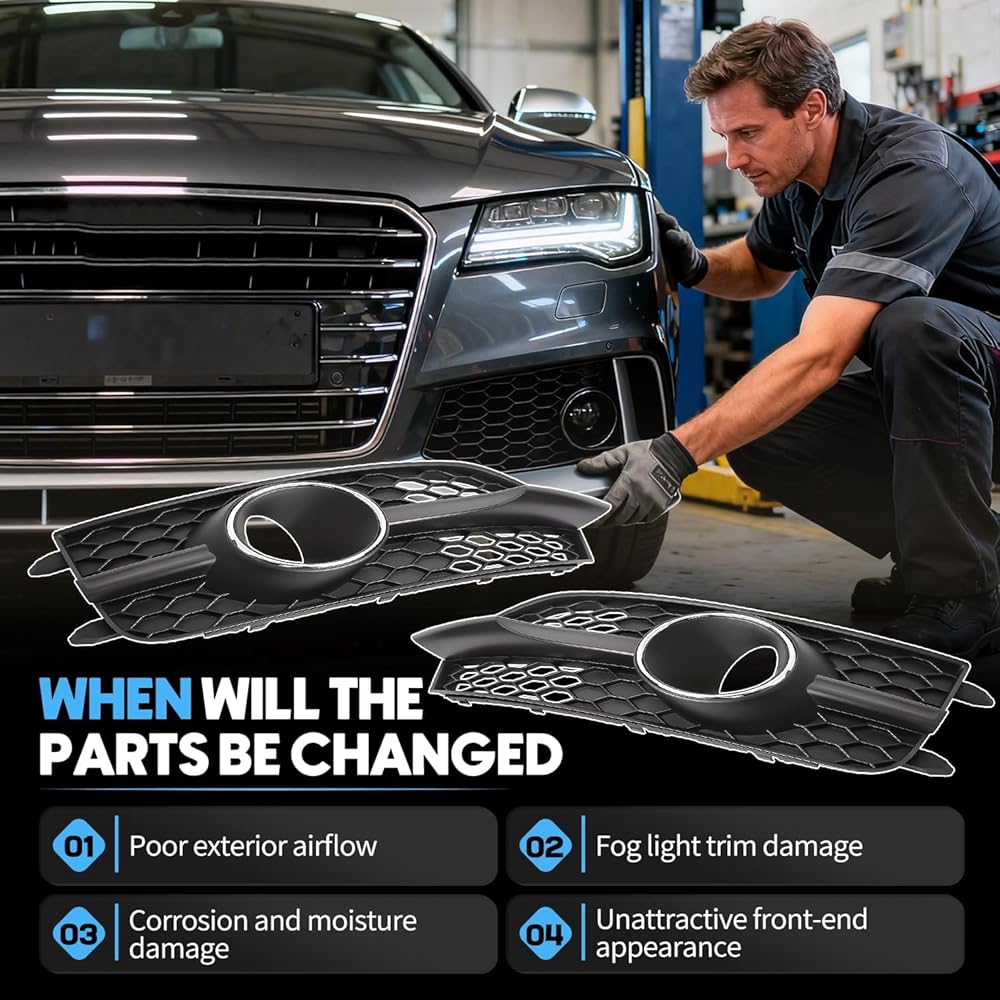 【Feature】Designed to protect fog lights from road debris, stones, and everyday impact, this grille cover helps maintain consistent lighting performance and clear visibility in foggy or rainy conditions. Its direct-fit structure allows for quick, straightforward installation without the need for complex tools or modifications, providing reliable protection and improved driving safety.