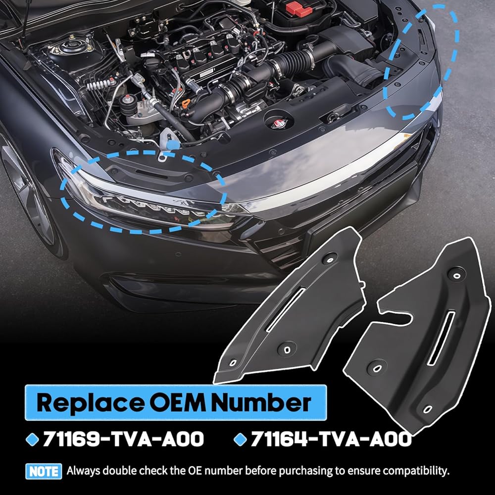 71164TVAA00 زوج دعامة دعم الشبكة السفلية الأمامية مناسب لـ 2018-2022 Honda Accord Sedan Hybrid Bumper Retainer مجموعة تقوية للسائق والراكب يستبدل 71164-TVA-A00 71169-TVA-A00