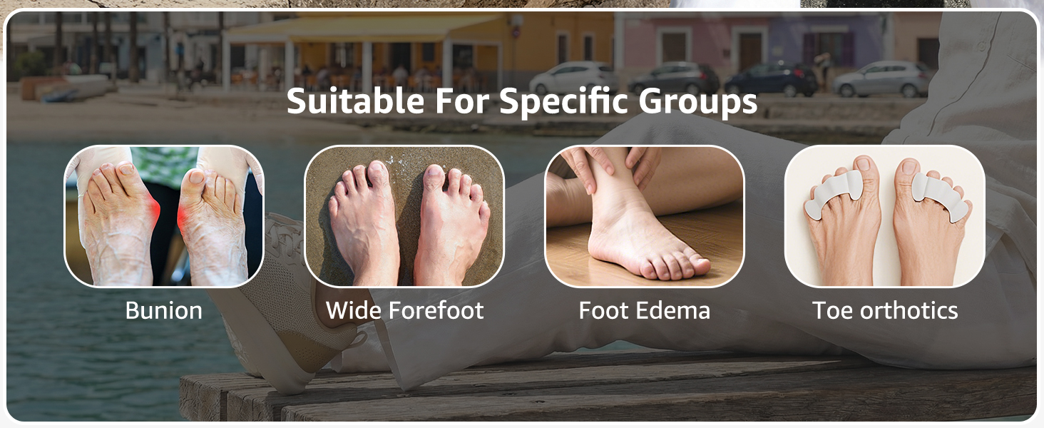 Women's Wide Toe Box Sneakers—Comprehensive Foot Protection. Designed specifically for women with wide feet or foot conditions, these walking shoes deliver unparalleled comfort. Combining flexibility, durability, and foot-health-focused engineering, these sneakers excel in daily walks, gym workouts, or tennis activities. The wide toe box prevents toe compression, providing natural space for toes to spread and effectively alleviating bunions. It's especially suitable for women with swollen or wide feet. The outsole of these women's wide-fit sneakers uses MD material, offering exceptional durability, lightweight comfort, and shock absorption to protect feet and knees during movement. On slippery surfaces like the slip-resistant sole safeguards workers from falls. The arch support system cradles the foot, effectively preventing fatigue and alleviating plantar fasciitis, making it ideal for those standing all day at work. Knit mesh covers the upper, ensuring efficient airflow inside and out to keep feet dry at all times. Featuring a stylish design, these shoes complement everyday outfits and suit seniors, adults, and youngsters alike. Versatile for walking, running, training, tennis, weightlifting, travel, all-day standing jobs, or working on slippery surfaces. The removable insole accommodates custom orthotics. Premium knit fabric is soft and smooth, preventing blisters. Available in multiple sizes: 6, 6.5, 7, 7.5, 8, 8.5, 9, 9.5, 10.