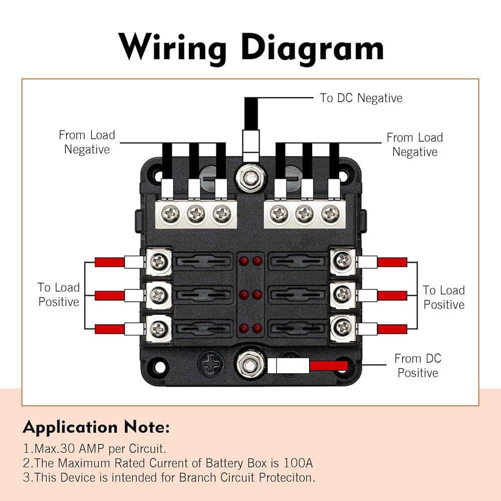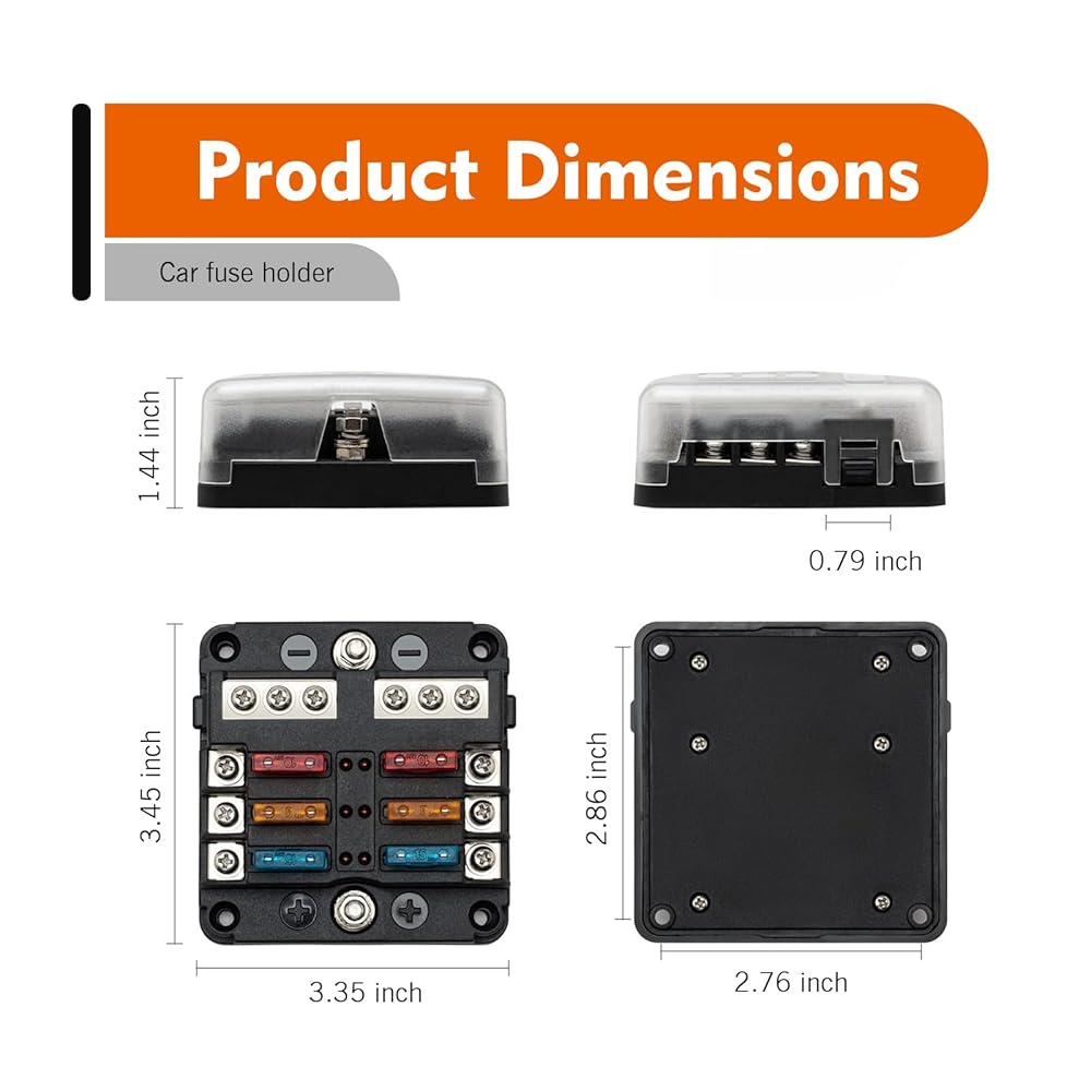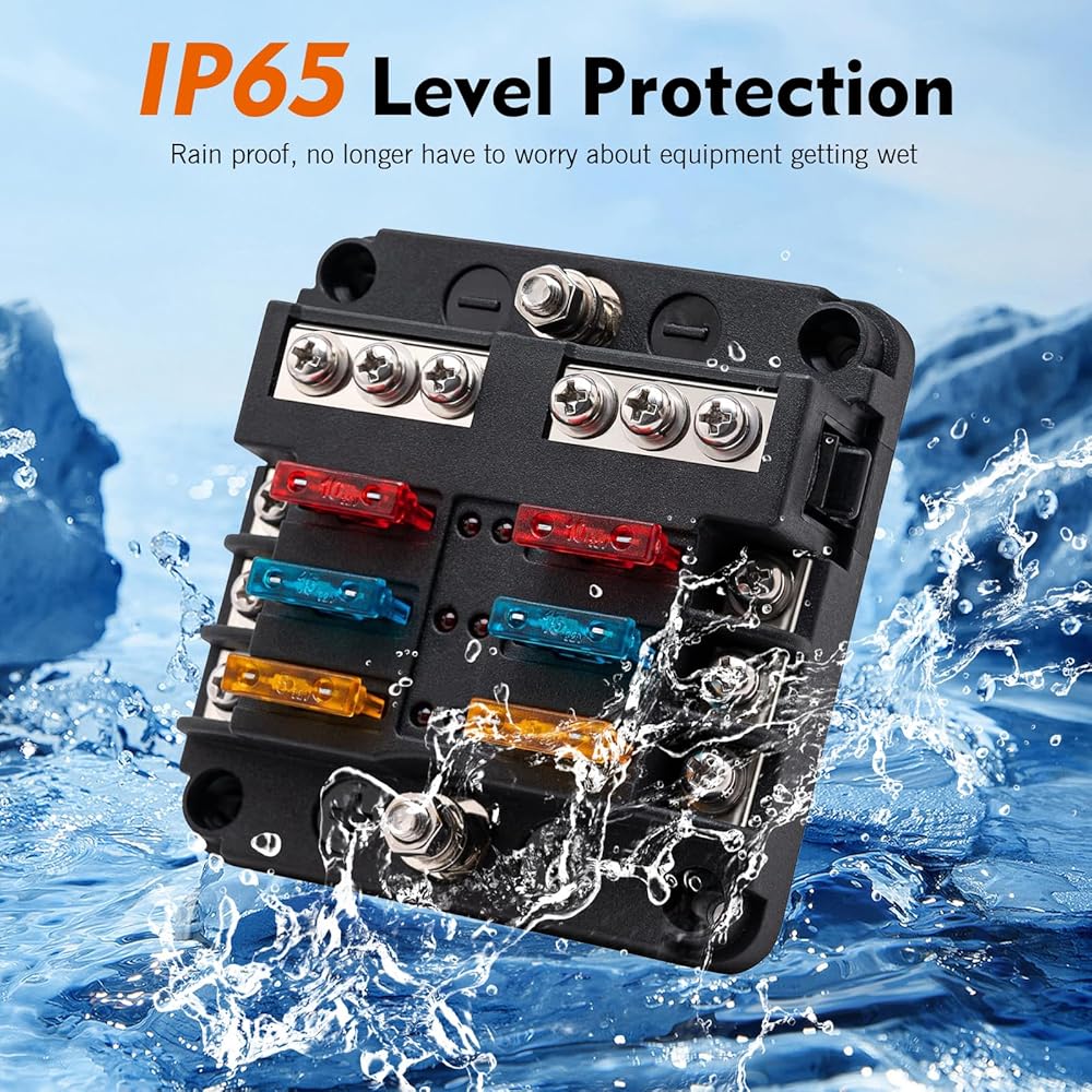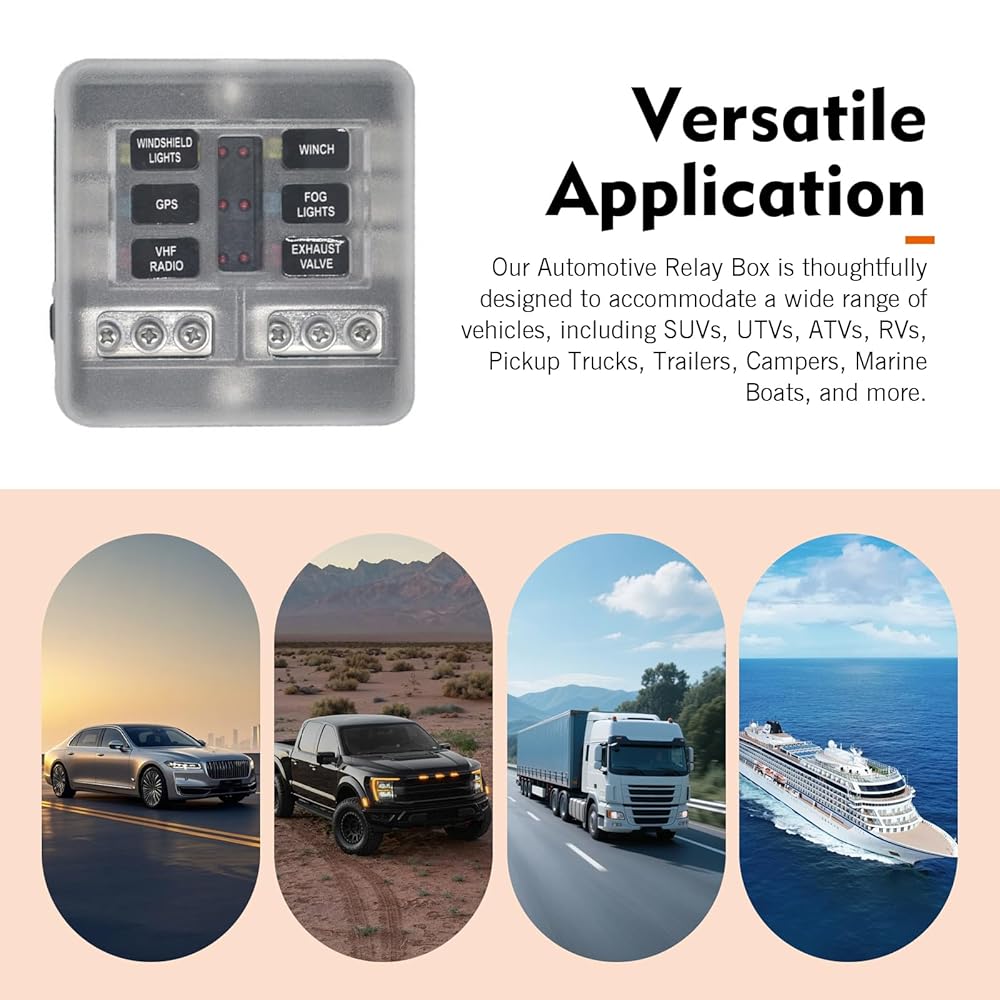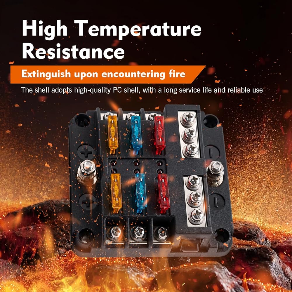 Independent Circuits: This fuse box provides six dedicated fuses and six grounding points for effortless installation. It delivers overload protection for automobiles, RVs, boats, and more, replacing tangled wires and fuse holders around battery terminals to create an organized, tidy, and user-friendly wiring system.