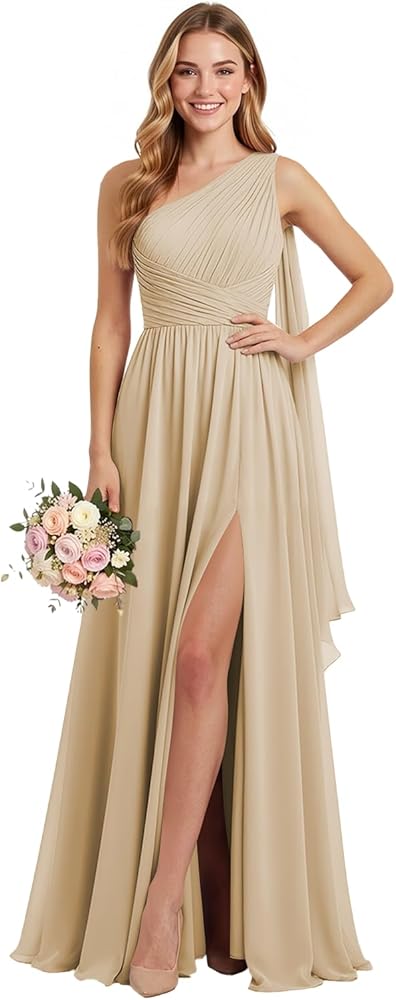 المزايا: فساتين وصيفة العروس لها كتف واحد، مع فتحة، بدون أكمام، مطوي، كشكشة، خصر إمبراطوري، مع شريط، فستان أنيق للنساء