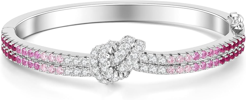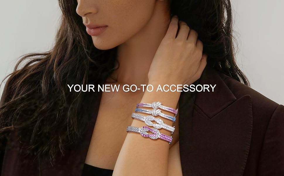 💎【آمن، أساور ملائمة】تم تصميم هذا السوار للسيدات على شكل سوار صلب، ويوفر ملاءمة ثابتة وغير قابلة للتعديل تستقر بشكل مريح وآمن على المعصم، مما يضمن بقاء شكله الأنيق وتصميم العقدة الرمزية سليمًا تمامًا.