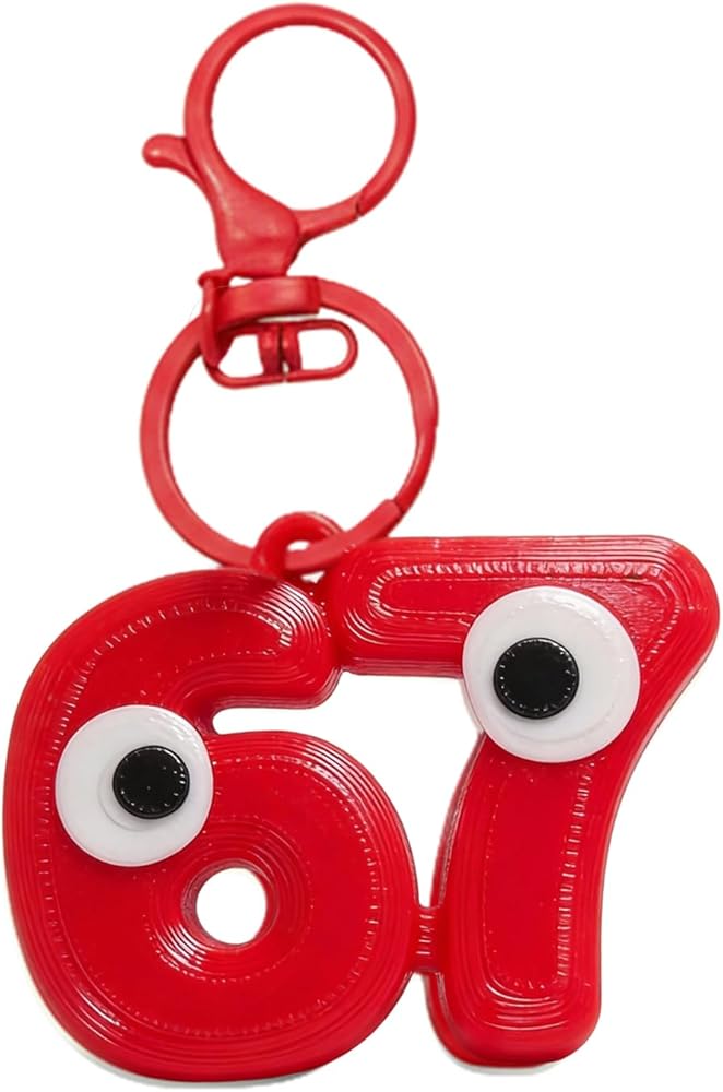 This adorable 67 Meme Keychain brings internet humor to life with its charming 3D printed design and playful googly eyes. Available in three vibrant colors—red, blue, and pink—this quirky accessory is perfect for anyone who appreciates a good laugh. The lightweight keychain weighs just 0.7 ounces and measures 2.5 x 2 x 0.1 inches, making it compact enough to attach to backpacks, purses, car keys, or zipper pulls without adding bulk. The distinctive number 67 design with its expressive googly eyes creates an instantly recognizable meme reference that's sure to spark conversations and smiles wherever you go. Crafted through 3D printing technology, this keychain features smooth contours and durable construction that can withstand daily use. The secure key ring attachment ensures your keys stay safely in place while adding a pop of personality to your everyday carry items. Whether you're treating yourself or searching for a fun gift for a friend who loves internet culture, this 67 Meme Keychain delivers both style and humor in one delightful package.