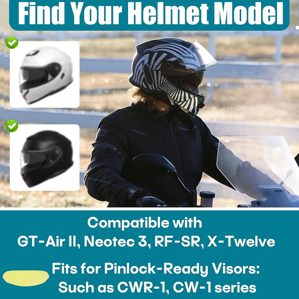 【Compatibility】Compatible with Shoei helmet visors, fits for CWR-1, CW-1, and CNS-1 Pinlock-ready lenses. Compatible with GT-Air II, Neotec 3, Neotec II, RF-SR, Neotec, Qwest, RF-1100, RF-1200, X-Twelve and GT-Air models