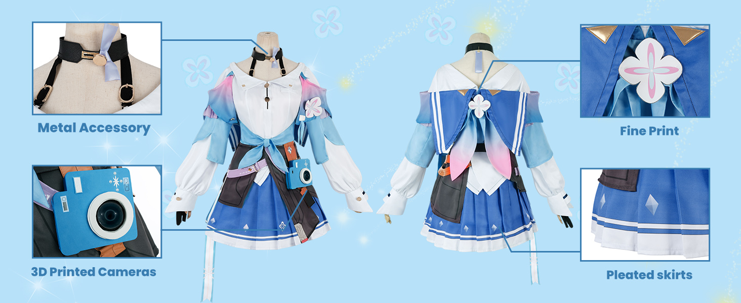 - 【التعبئة】يحتوي الزي التنكري ليوم 7 مارس على: قميص علوي، وقفاز، وتنورة، وإكسسوارات الرقبة، والأقواس، والكاميرا، وإكسسوارات الساق، والمئزر.