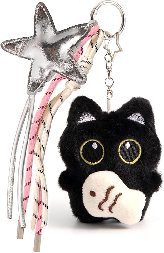 • CUTE DESIGN: Adorable black cat plush keychain with soft texture and charming details, perfect for adding a touch of whimsy to your accessories