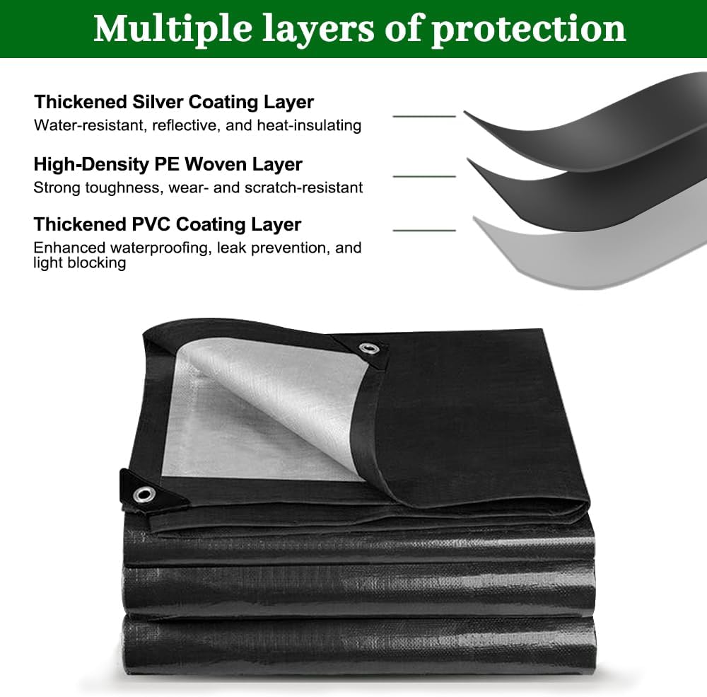 - [PE & PVC material] our tarps are 100% waterproof, Heavy-duty, abrasion-resistant, Strong and UV-resistant.