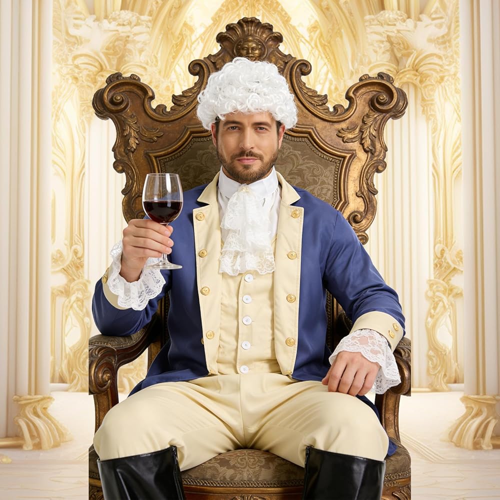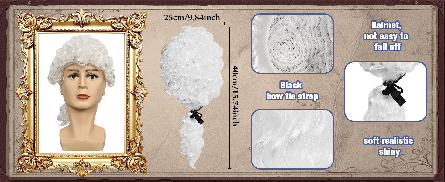 سهل التشغيل: الشعر المستعار التنكري للآباء المؤسسين الخاص بنا مجهز بشبكة ذات حواف، ويمكن تثبيته على رأسك بإحكام، وليس من السهل أن يسقط؛ بالإضافة إلى ذلك، فإن الأساور والياقة قابلة للتعديل ومرنة، ويمكن استخدامها لكل من النساء والرجال، والبالغين يمكنك تعديلها وفقًا لتفضيلاتك واحتياجاتك.
