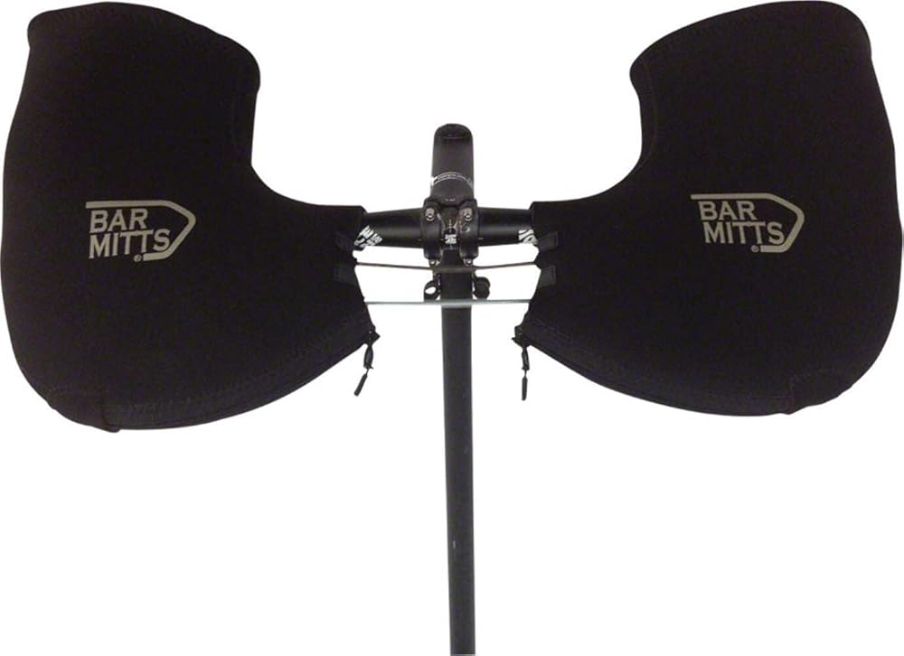 Product Compatibility: The Bar Mitts Attachable Large Black Mountain Bike Extreme Cold Pogies fits Flat Handlebars with Bar End Mirror