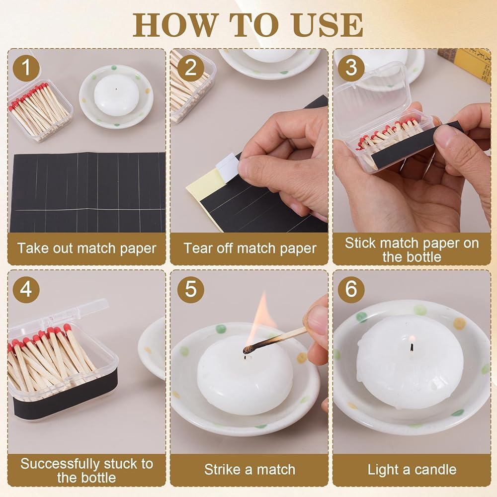 Premium Material: The match striker paper is made of adhesive phosphate sheet, adhesive and lightweight. The surface has high friction, making it easy to ignite. At the same time, it ensures storage safety. You can choose it with confidence.
