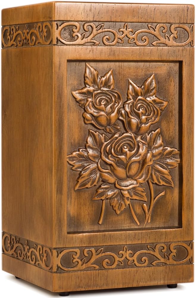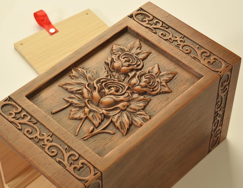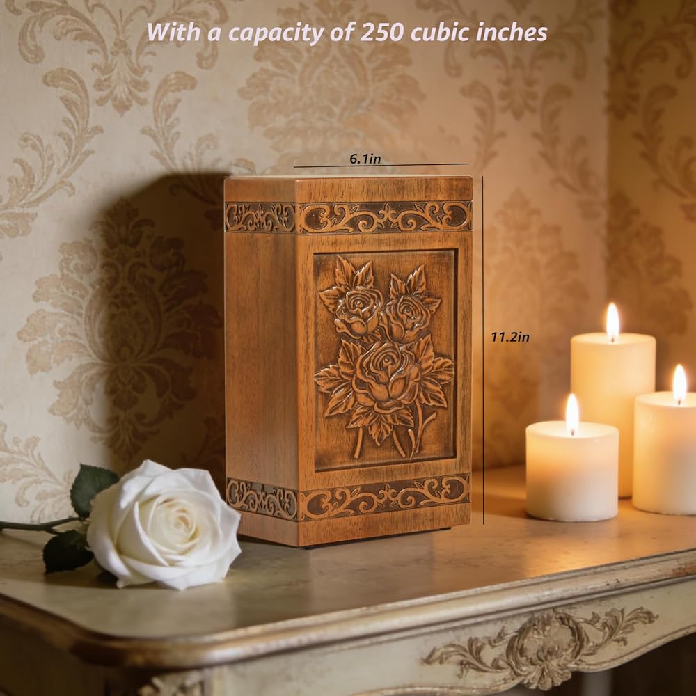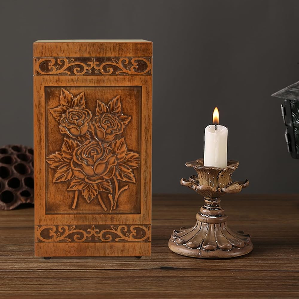 Meticulously With Superior Quality: Our team of expert artisans create the urn using superior craftsmanship and high-quality materials. This oversized wooden funeral cremation urn is 3D hand carved featuring Rose. Each urn is crafted from high-quality wood with meticulous hand-finished details to respectfully honor your loved.