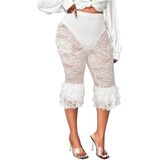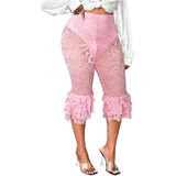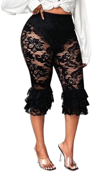 - Features: Plus size capri pants for women, lace, see through, high rise, ruffle hem, tiered layer, skinny