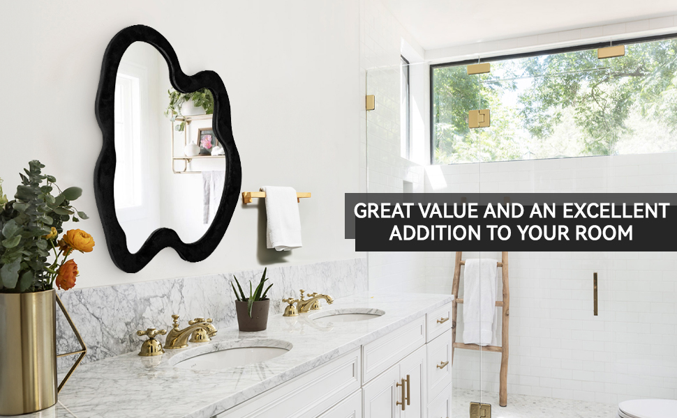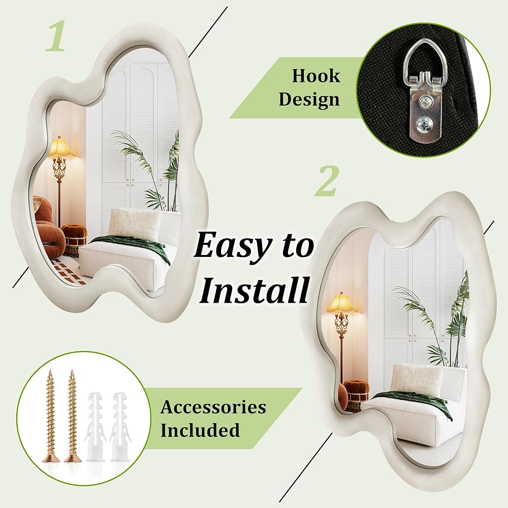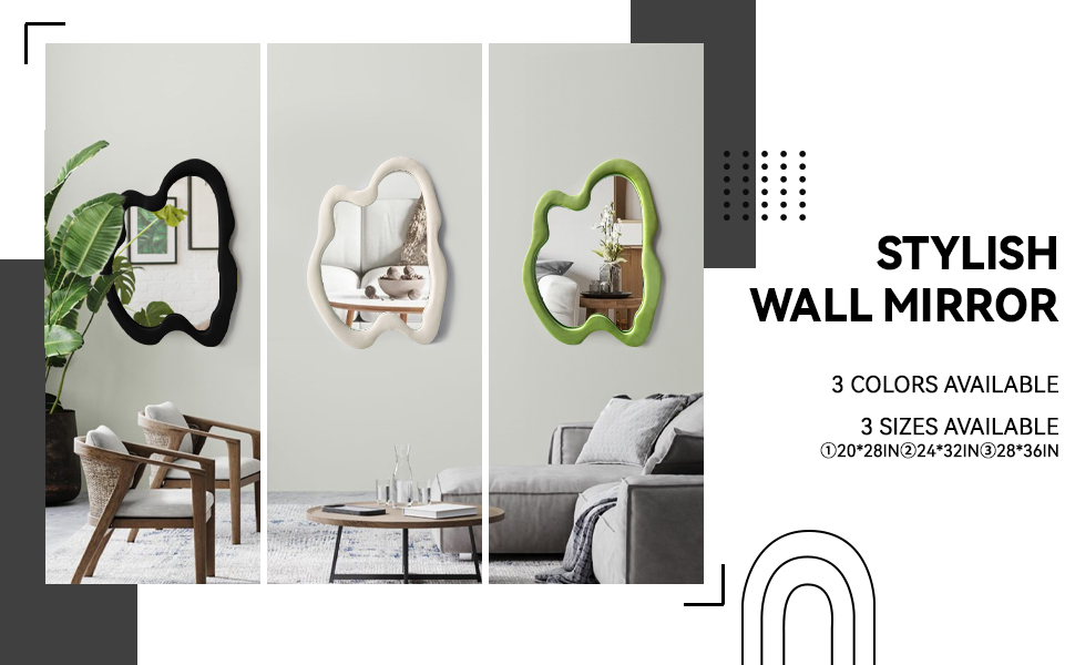 【مرآة حائط حديثة غير منتظمة】تحتضن عدم التناسق مع هذه المرآة الجذابة، حيث يتم تجاوز الحدود التقليدية بشكلها الفريد. تتلاعب حوافها غير المنتظمة بالضوء والانعكاس، مما يوفر خروجًا منعشًا عن التصميمات المتماثلة القياسية.