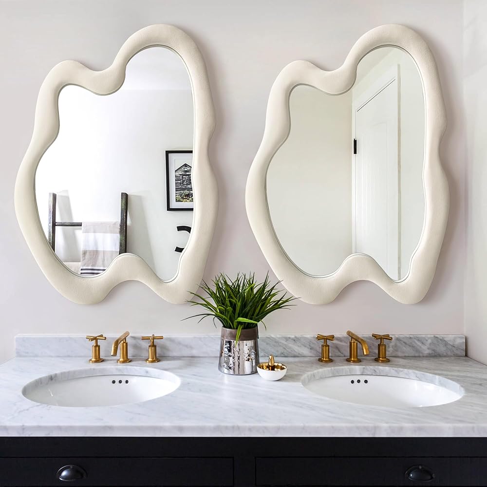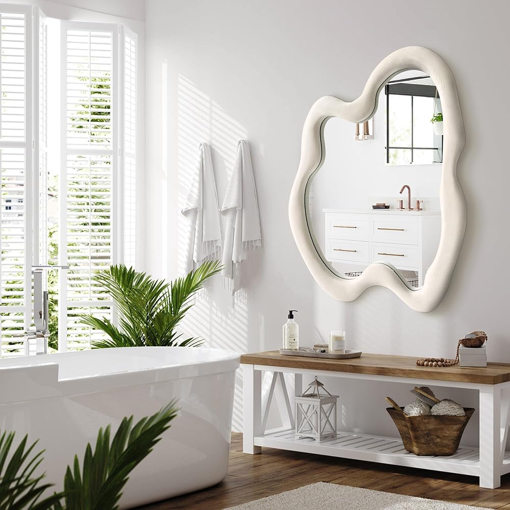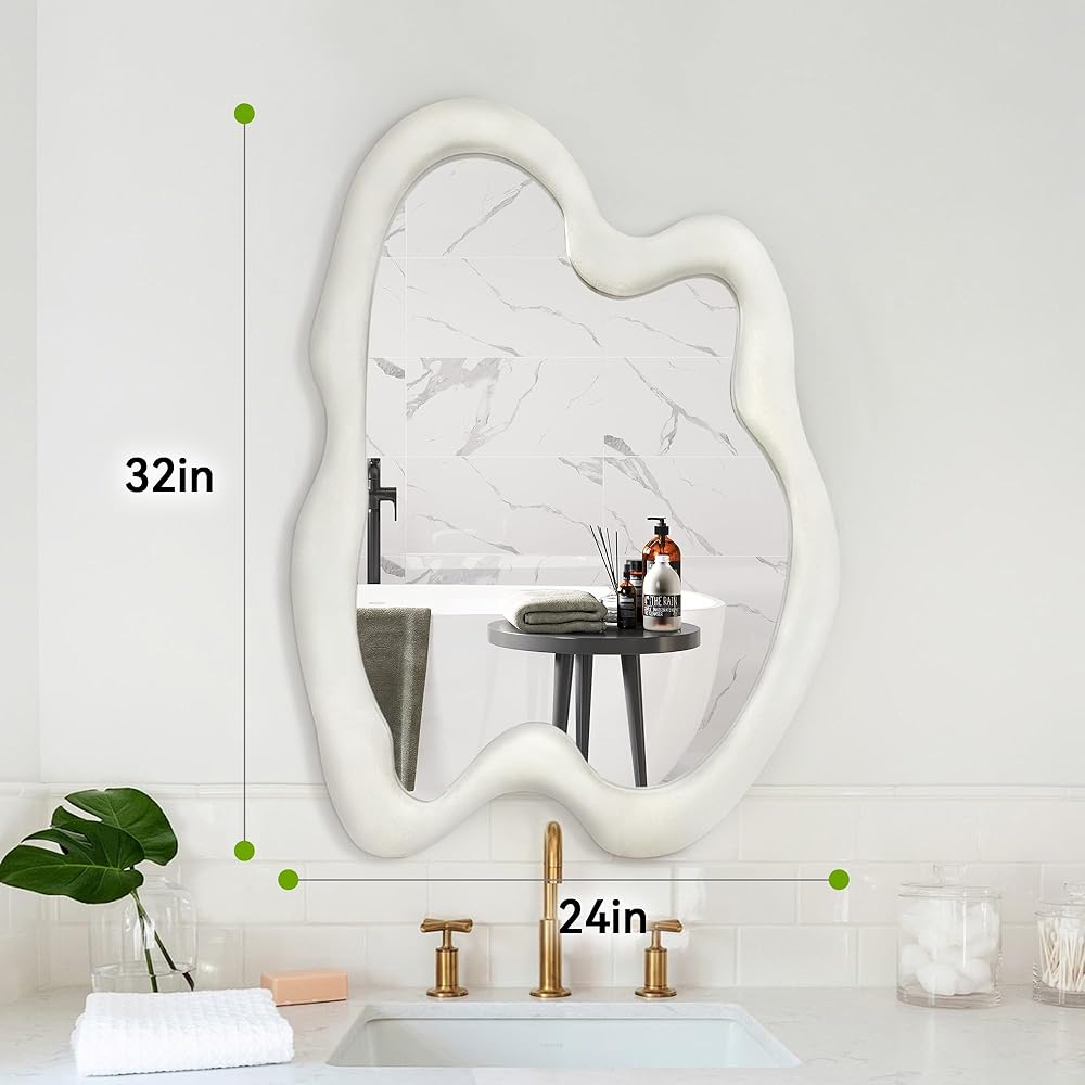【تصميم تجريدي ومموج】تجرأ على أن تكون مختلفًا مع هذه المرآة غير التقليدية التي تتميز بشكل غير منتظم وغريب الأطوار. تتحدى معالمها غير المتوقعة الأعراف، مما يجعلها بداية محادثة في المساحات التي تتوق إلى التفرد والشخصية.