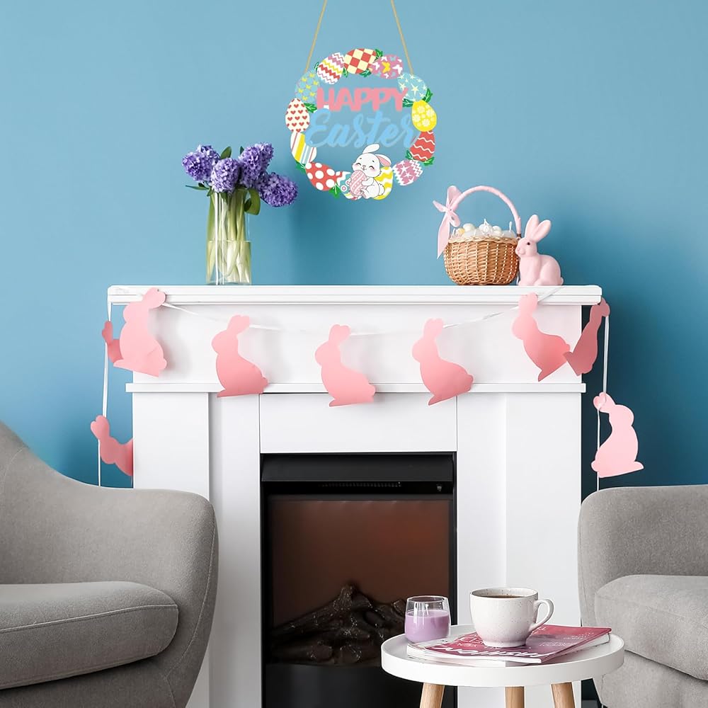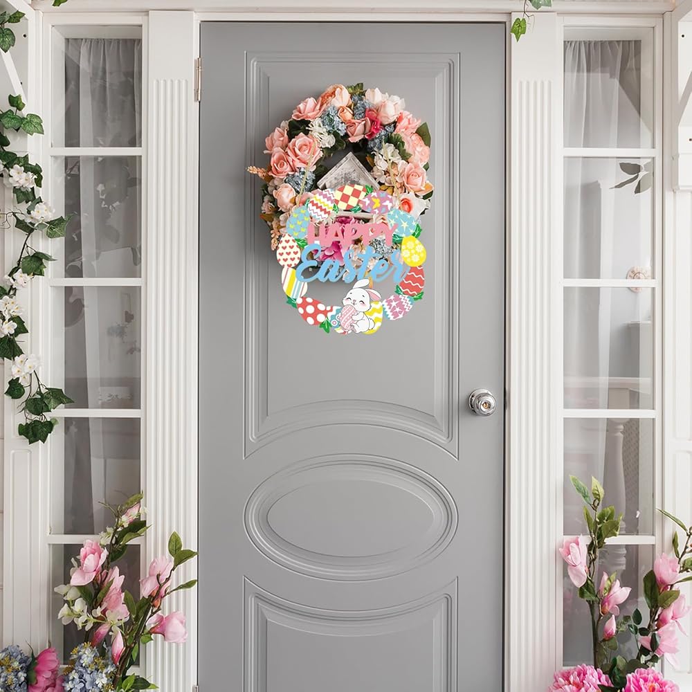 Easter Bunny and Egg Elements: Our adorable spring Easter door sign feature bunnies and eggs. Perfect for decorating Easter-themed walls, doors, fireplaces, and other hanging decorations.