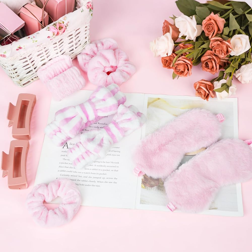 بيوتي 64 قطعة من مستلزمات حفلات النوم للفتيات، مستلزمات حفلات النوم للبنات، عصابة رأس، أقنعة العين، ربطات شعر، سوار معصم، مشابك شعر، حقيبة أدوات الزينة لمستلزمات النوم