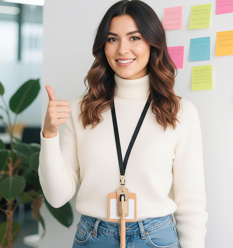 • جلد متين - حامل أقلام الشارة الخاص بنا مصنوع من جلد ناعم ولكنه قوي يقاوم التآكل اليومي، ويوفر مظهرًا أنيقًا واستخدامًا دائمًا للحمل اليومي على الحبال أو بكرات الشارة