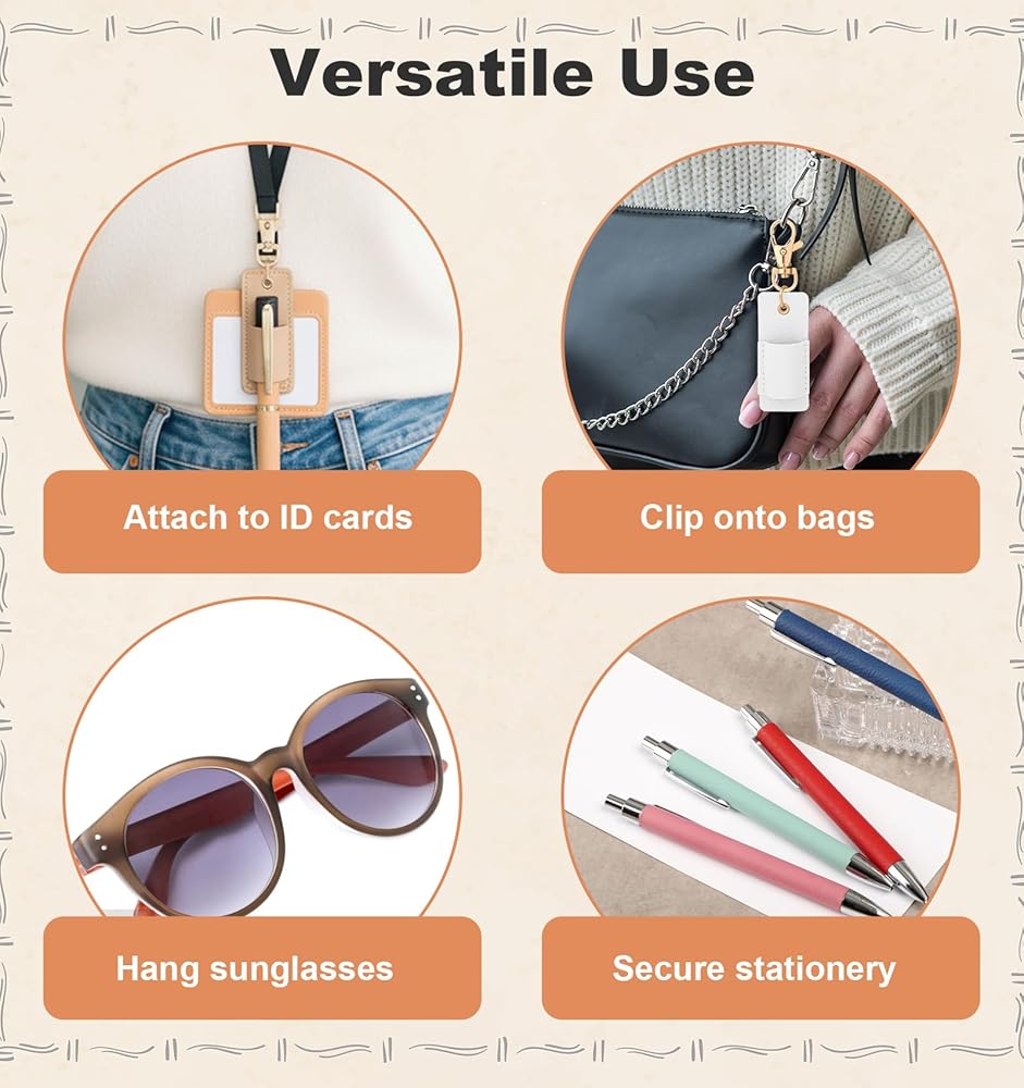 • مرفق مرن - يتضمن حامل القلم الخاص بنا لبكرة الشارة مشبكًا قويًا لسلسلة المفاتيح يتم ربطه بحقائب الظهر أو المحافظ أو بكرات الشارات أو خطافات المكتب، مما يوفر خيارات حمل متعددة للمدرسة أو المكتب أو السفر