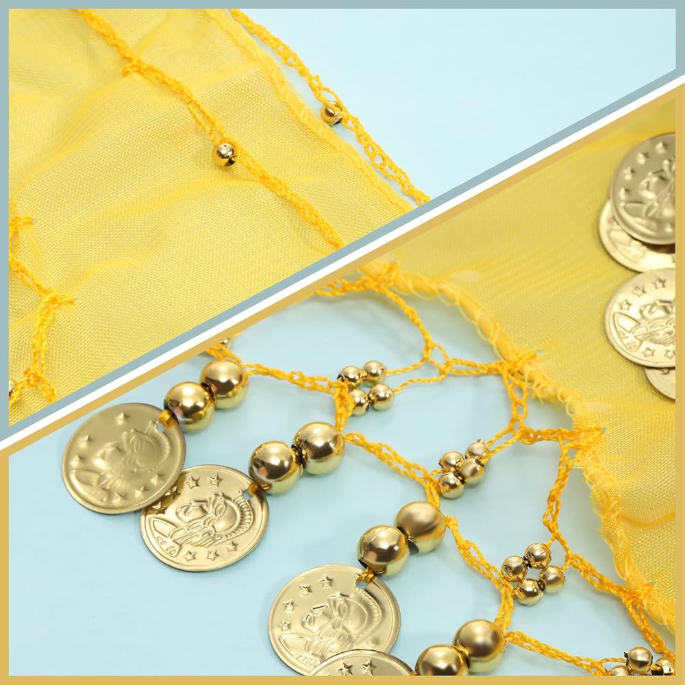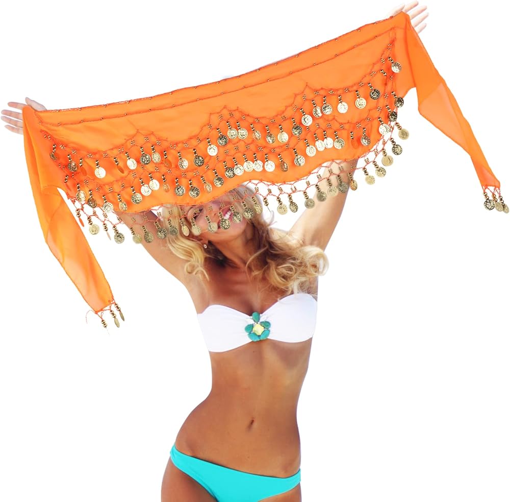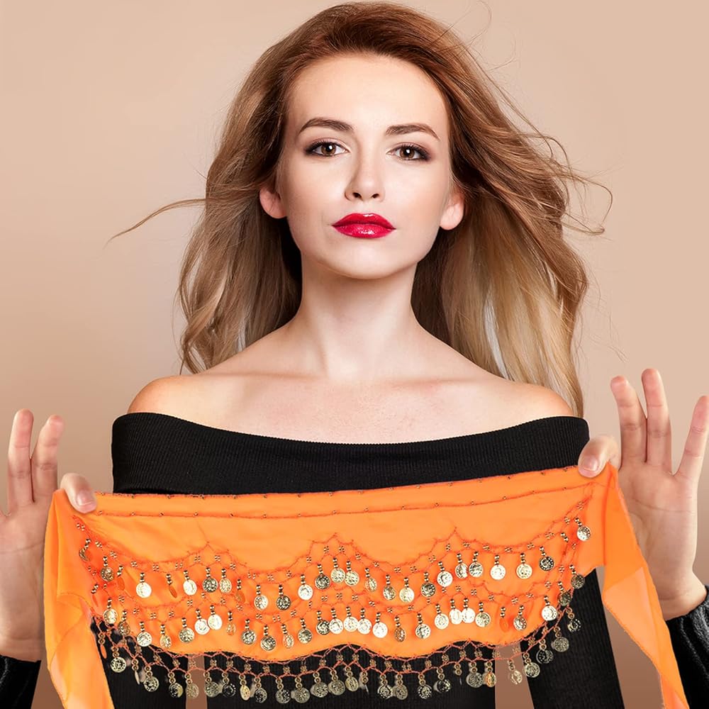 The belly dance scarf with gold dangling coins can match with most outfits easily. You can wear this hip scarf and show off your beautiful dance moves, and you can also wear in daily life.