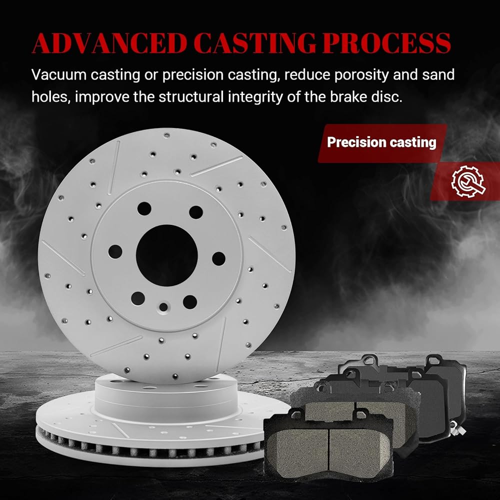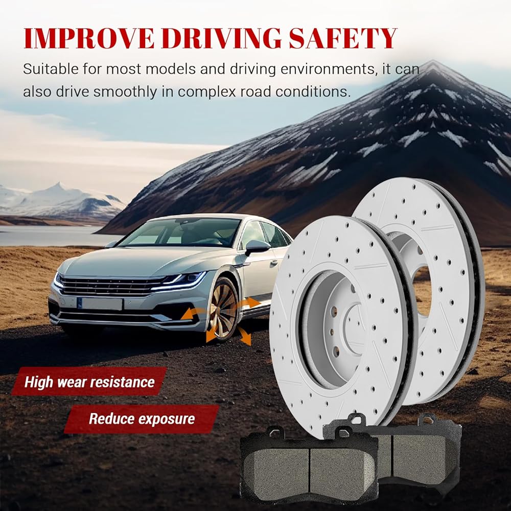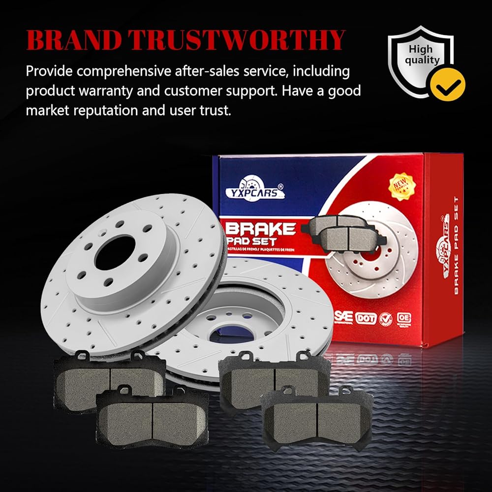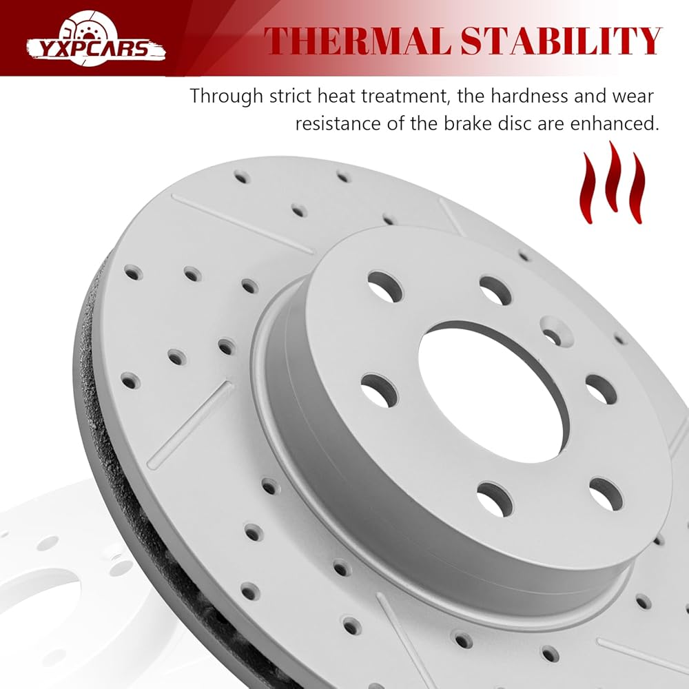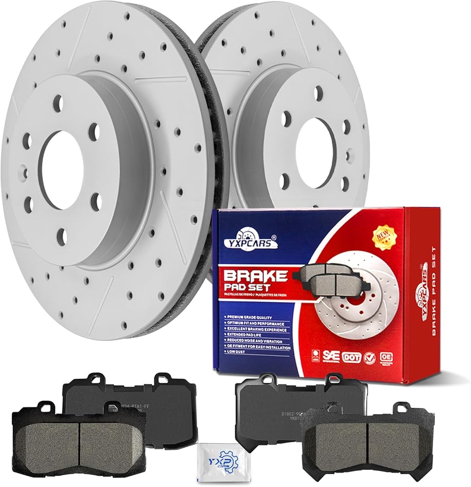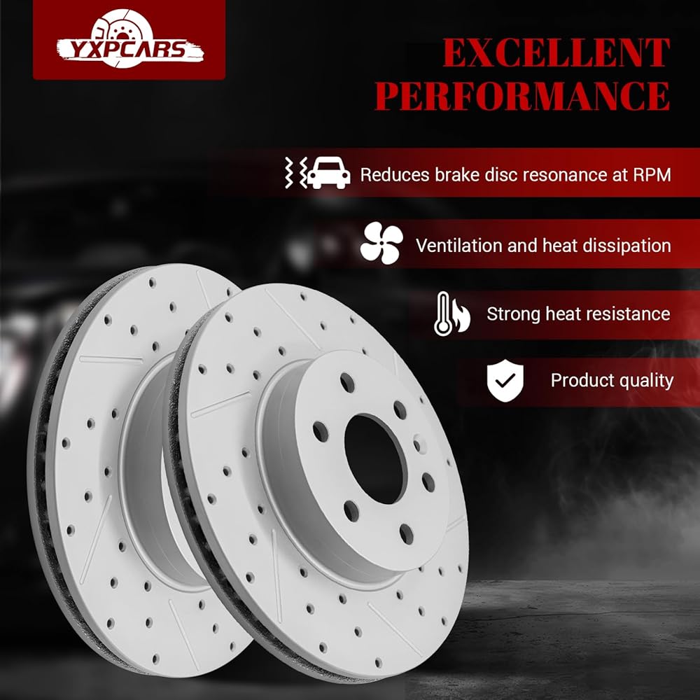 YXPCARS Automotive Replacement Disc Brake Kits--Front Brakes Pad and Drilled Slotted Vented Rotors