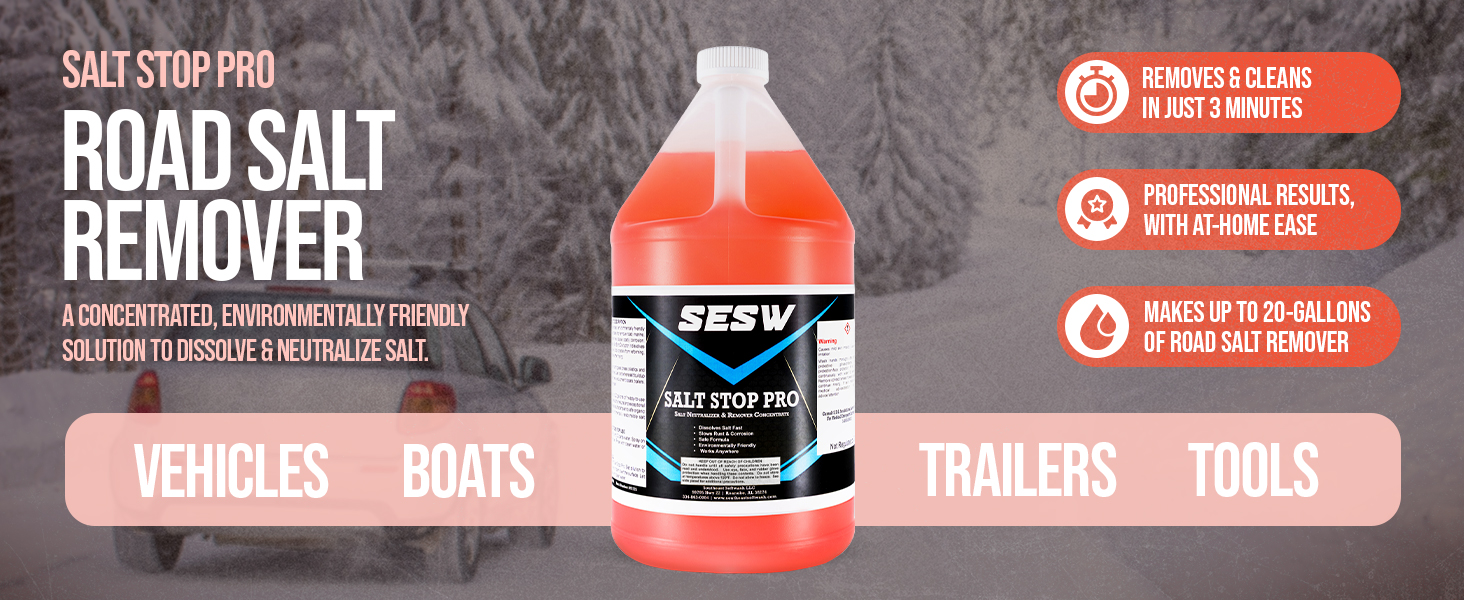 لا يترك شيئا وراءه. - لا يقوم Salt Stop Pro بإبطال مفعوله فحسب، بل يتم شطفه بسرعة وتنظيفه، دون ترك أي أوساخ أو ضباب أو طبقة لزجة خلفه.