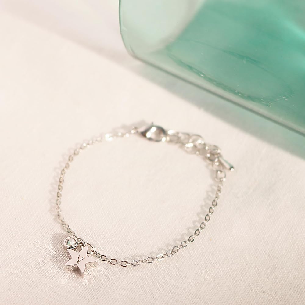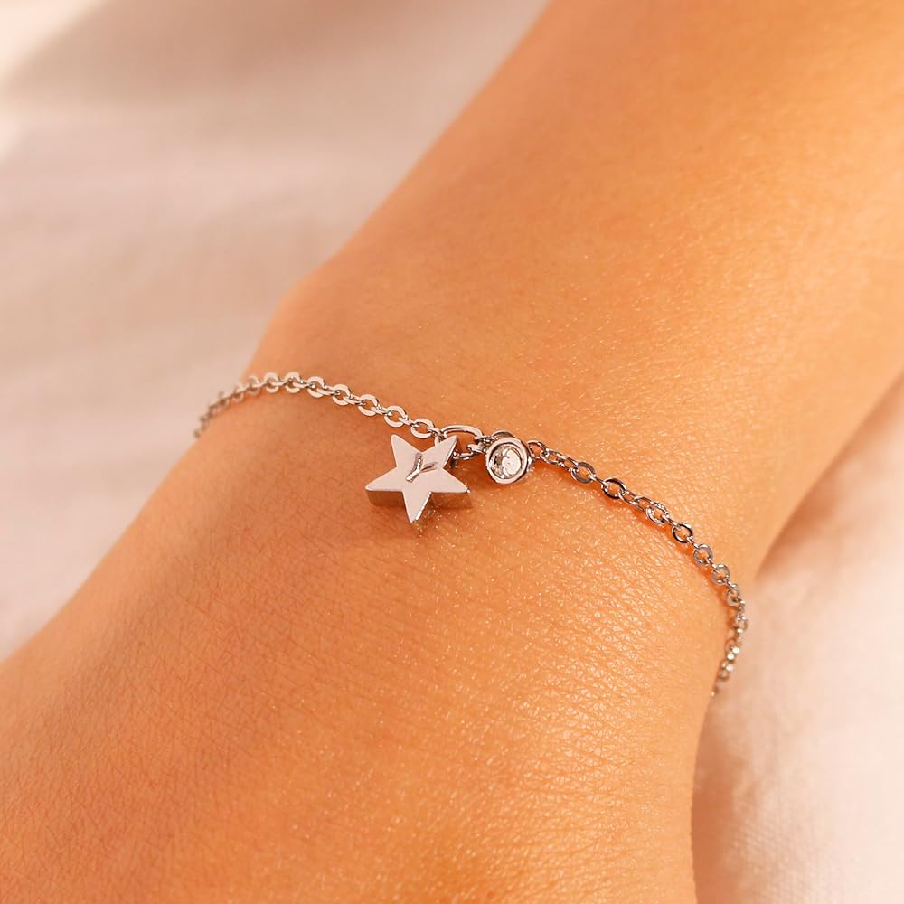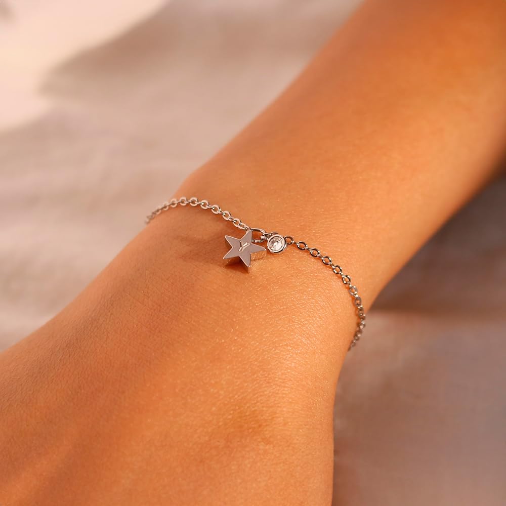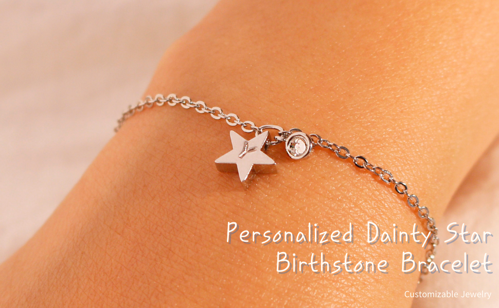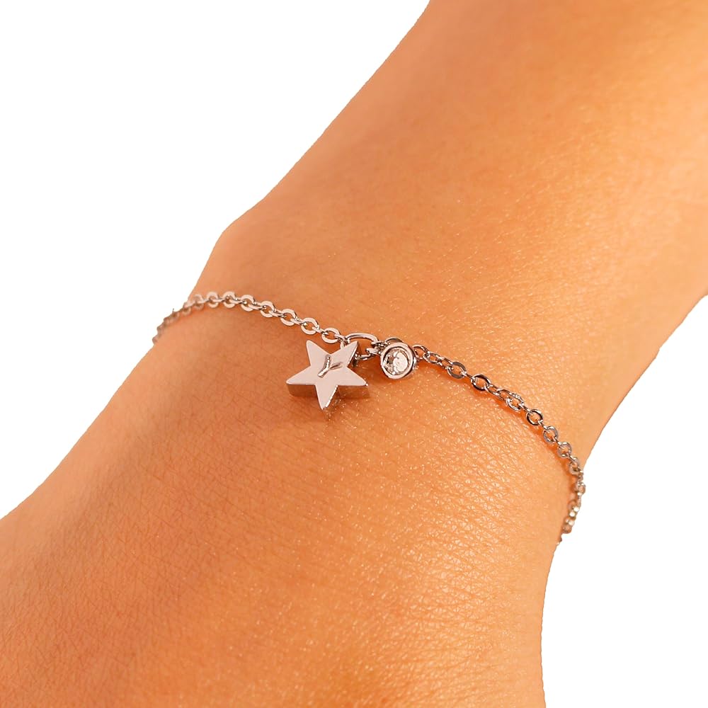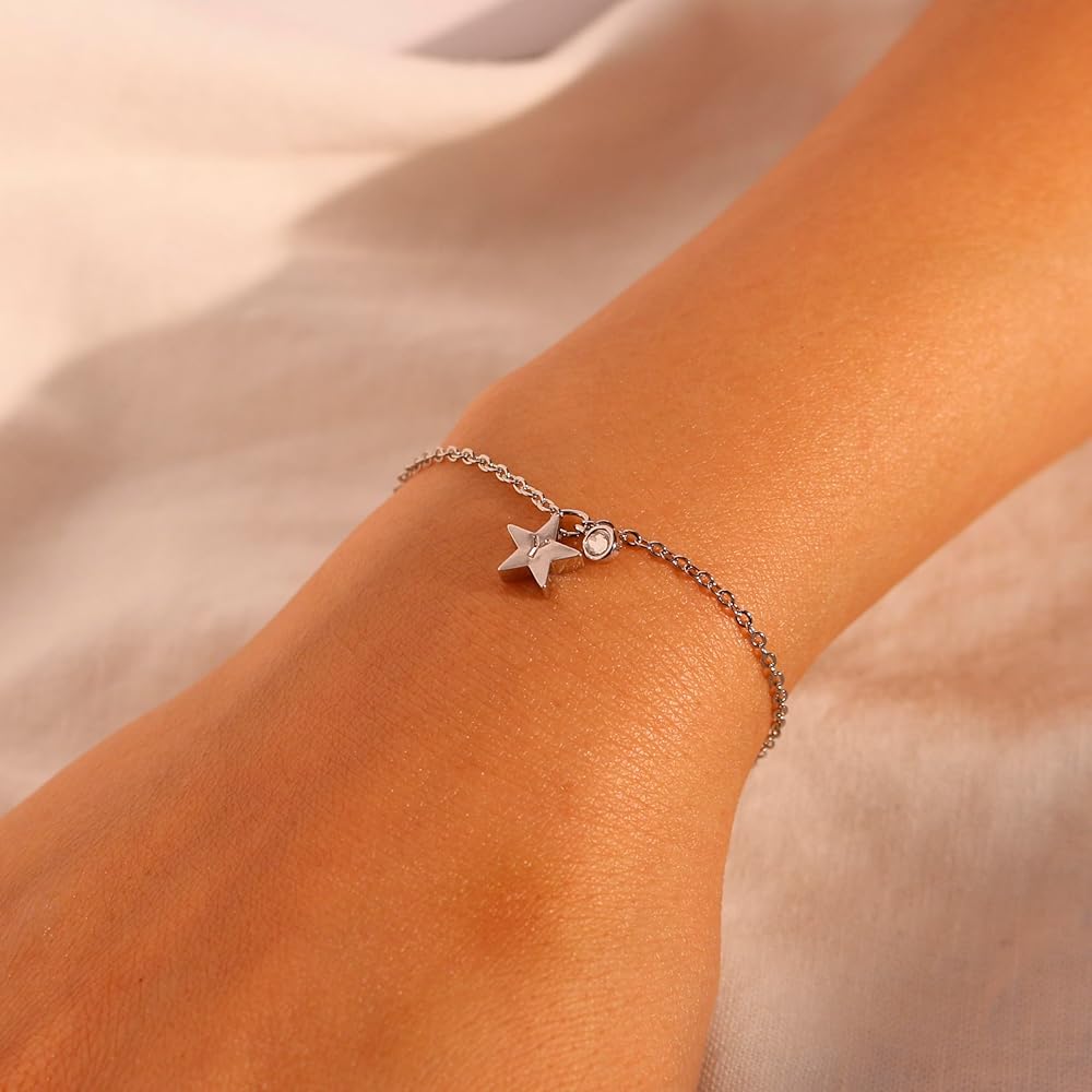 - تصميم مذهل: يتميز سوار السلسلة الأنيق الخاص بنا بسحر نجمة رقيق مزين بحجر ميلاد متلألئ، مما يضيف لمسة من الجمال السماوي إلى أي مجموعة.