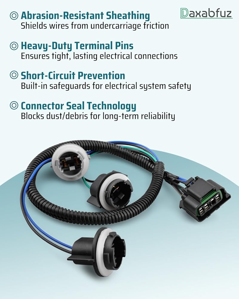 Solves common tail light issues caused by worn-out harnesses: dim or flickering brake lights, non-responsive turn signals, failed reverse lights, or complete tail light outage.