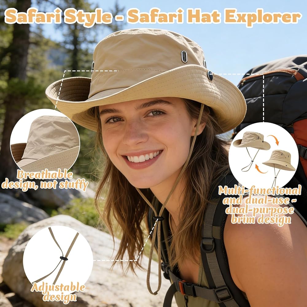 3. Thoughtful Design Details: The adjustable fisherman hat includes a chin drawstring for a secure fit and rust-resistant buttons on each side, allowing you to easily switch up the style—think classic cowboy hat or hunter cap. The generously sized square scarf (approx. 27.5 x 27.5 inches) offers versatile styling options: wear it as a neckerchief, a headband, or even tie it on your handbag for a pop of pattern. (Hand wash recommended for the scarf.)