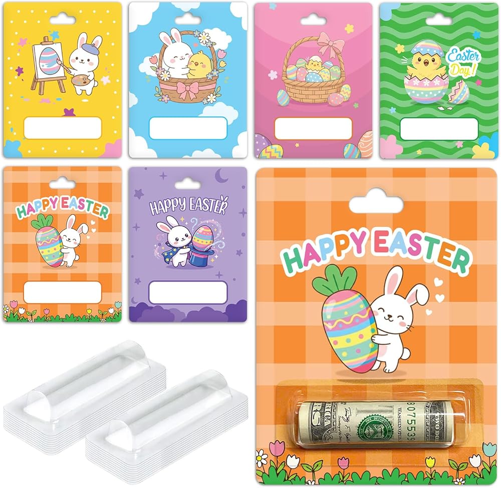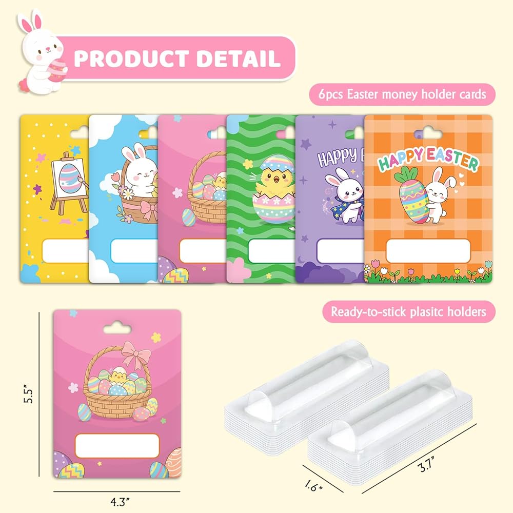 حزمة من 6، بطاقات حامل أموال عيد الفصح، تصميمات أرنب لطيفة، حامل بطاقات هدايا للأطفال، حشو سلة عيد الفصح، مجموعة بطاقات هدايا عيد الفصح، بطاقات الهدايا