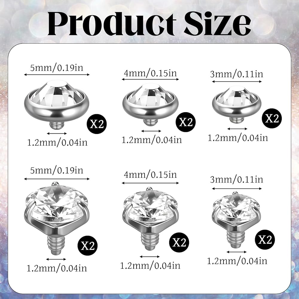 • Perfect Match: A set of 12 dermal piercing jewelry tops that will add unique charm to your overall look and showcase your personal style.