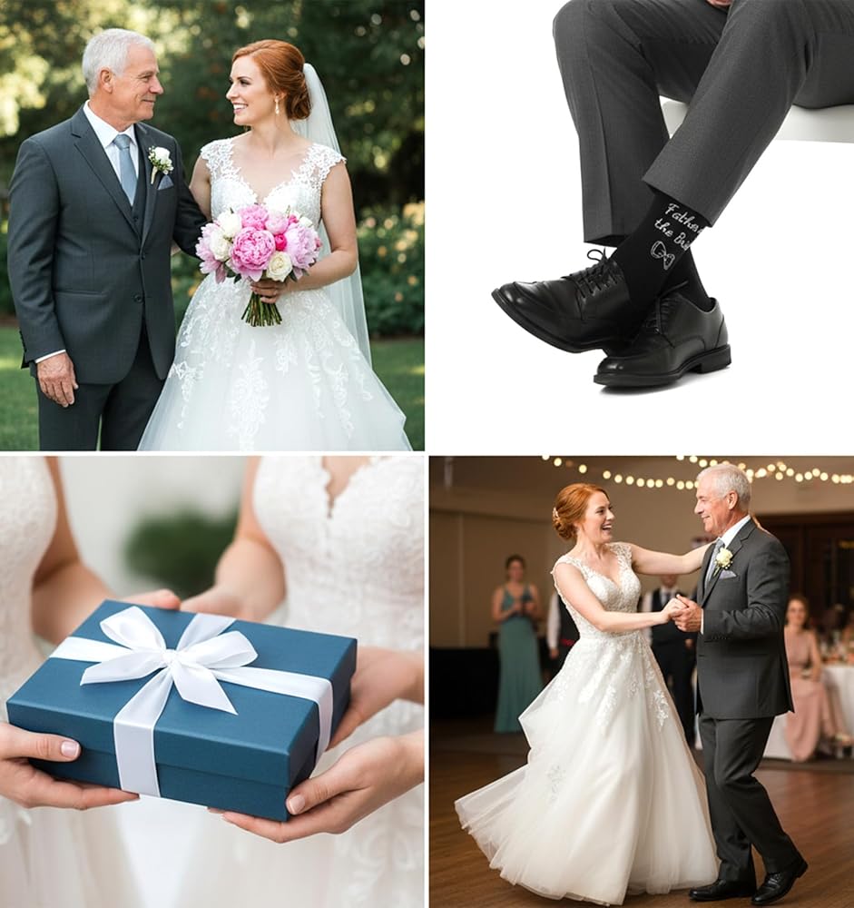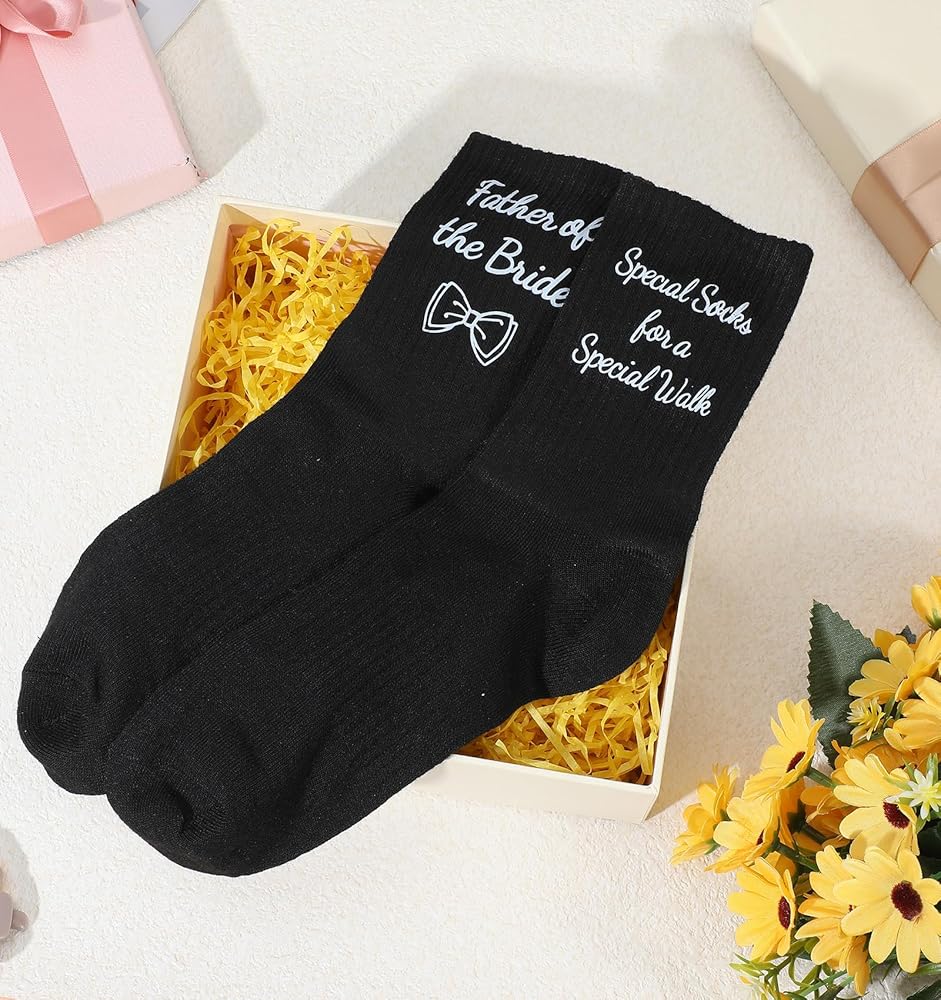 • تذكار مدروس - دع والدك يستمتع بارتداء هذه الجوارب في يومك الكبير، مما يضيف لمسة من الدفء والسعادة إلى المناسبة مع خلق ذكريات دائمة؛
