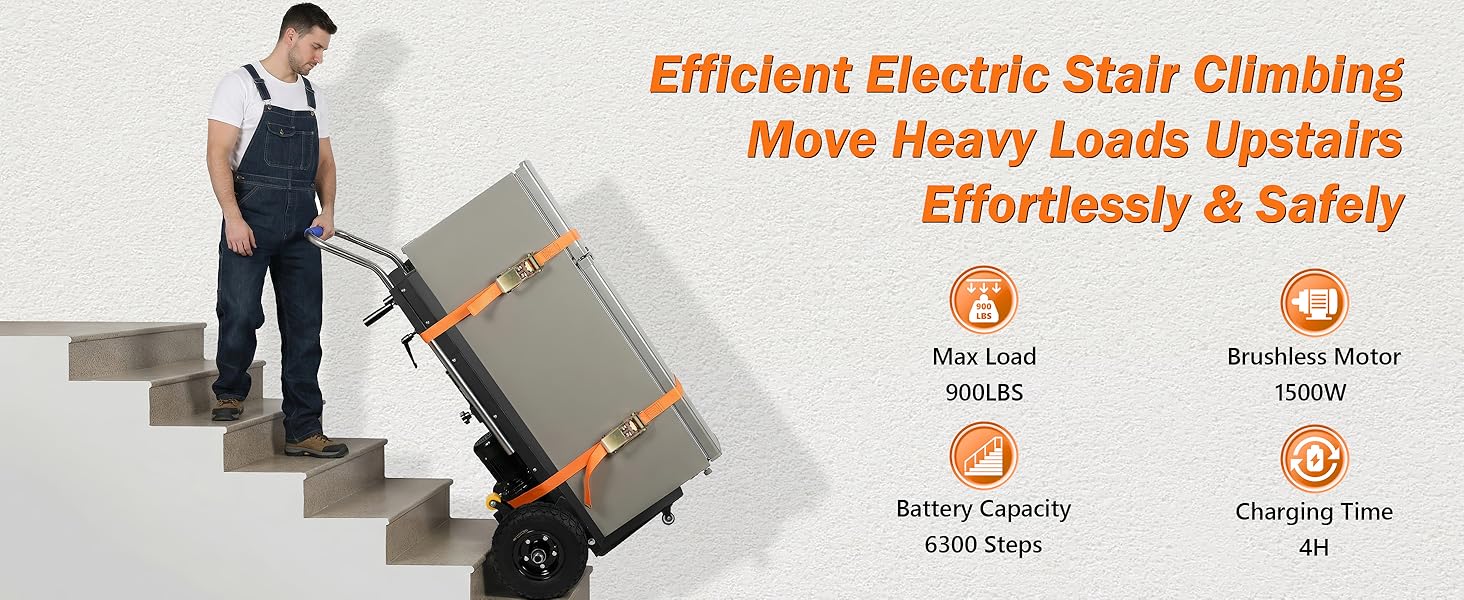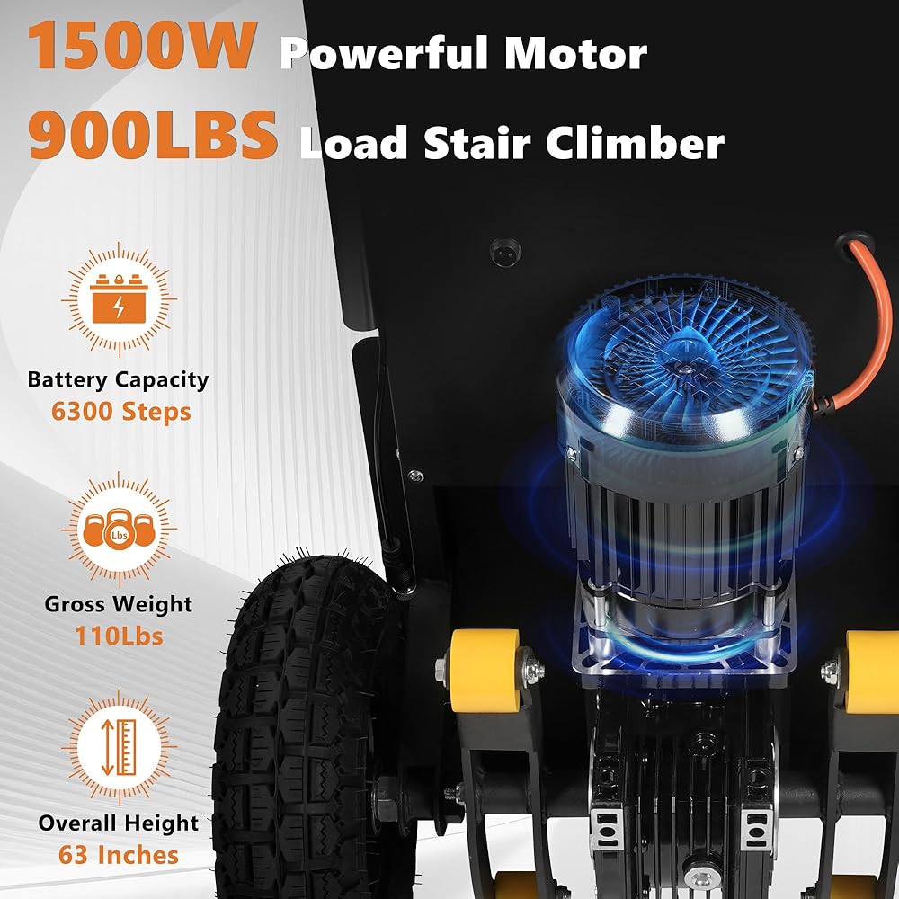 محرك قوي بقوة 1500 واط لتسلق السلالم بكفاءة: مدعوم بمحرك عالي الأداء بقدرة 1500 واط، توفر عربة تسلق السلالم هذه تشغيلًا قويًا وفعالاً. إنه يوفر وضعين للسرعة لتتناسب مع أعباء العمل المختلفة: السرعة البطيئة: 24 خطوة في الدقيقة؛ السرعة السريعة: 35 خطوة في الدقيقة. عند الشحن الكامل، يوفر 5 إلى 5.5 ساعات من وقت الاستعداد ويدعم ما يصل إلى 6300 درجة تسلق، مما يجعله مثاليًا لمهام النقل الصعبة.