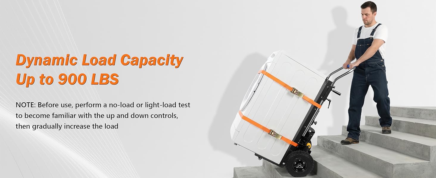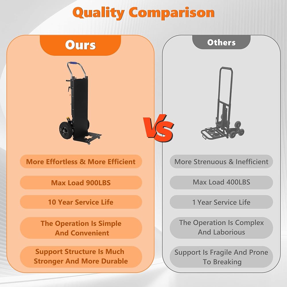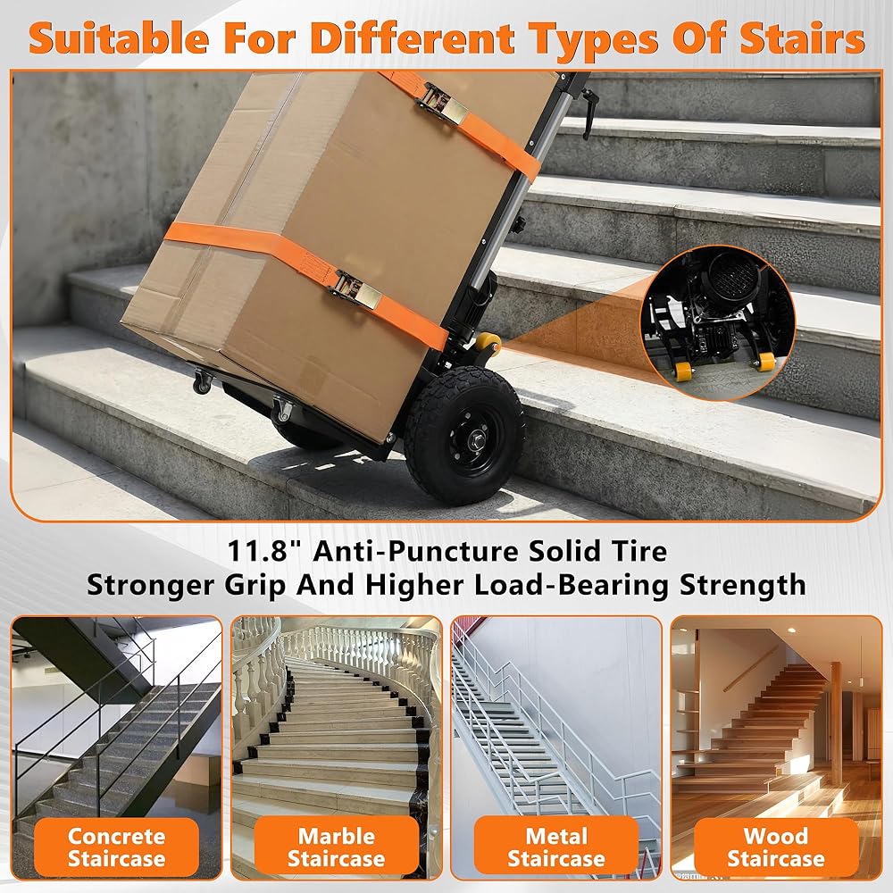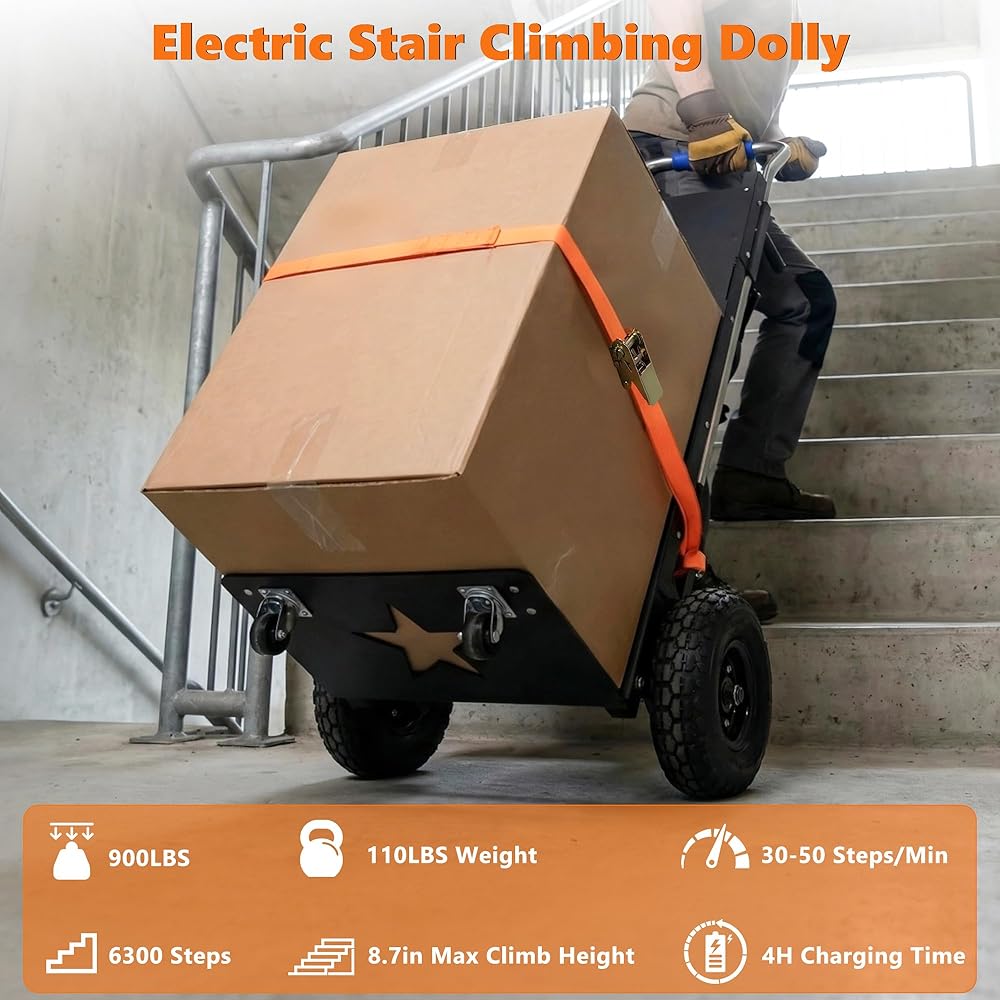 【هيكل متين وشديد التحمل】تم تصميم جهاز تسلق السلالم الكهربائي هذا للمهام الصعبة، ويتميز بهيكل قوي ومتين مصمم للاستخدام طويل الأمد. مصنوعة من مواد عالية الجودة، ويمكنها تحمل بيئات العمل الشاقة بينما تسمح لوحة الأصابع القابلة للطي بالتخزين المريح عند عدم الاستخدام. توفر الإطارات المطاطية غير القابلة للانزلاق احتكاكًا ممتازًا، ويدعم الإطار الفولاذي الصلب أحمالًا تصل إلى 900 رطل من أجل نقل آمن ومستقر.
