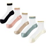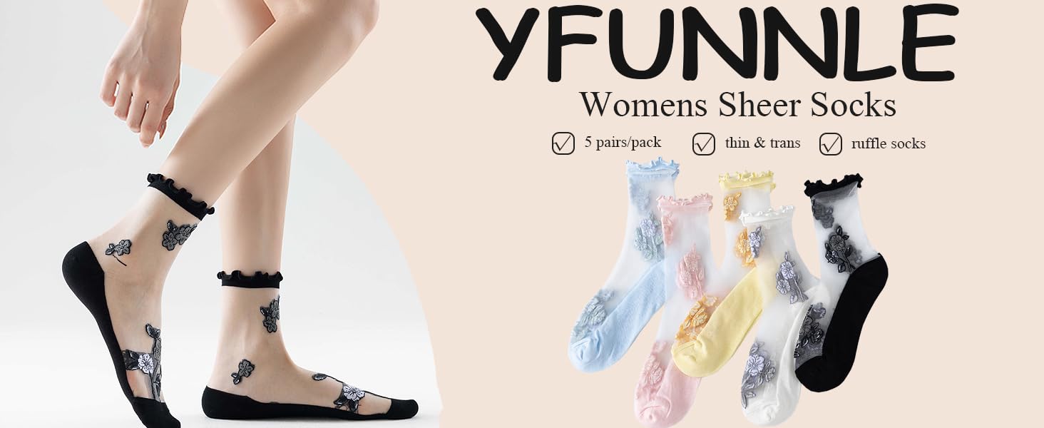 Size & Color: One size fits most women girls with the nylon sheer socks stretchy-fit. US women size 6-9. These cute ankle transparent socks pack come with 5 different colors. Each pair well packed.