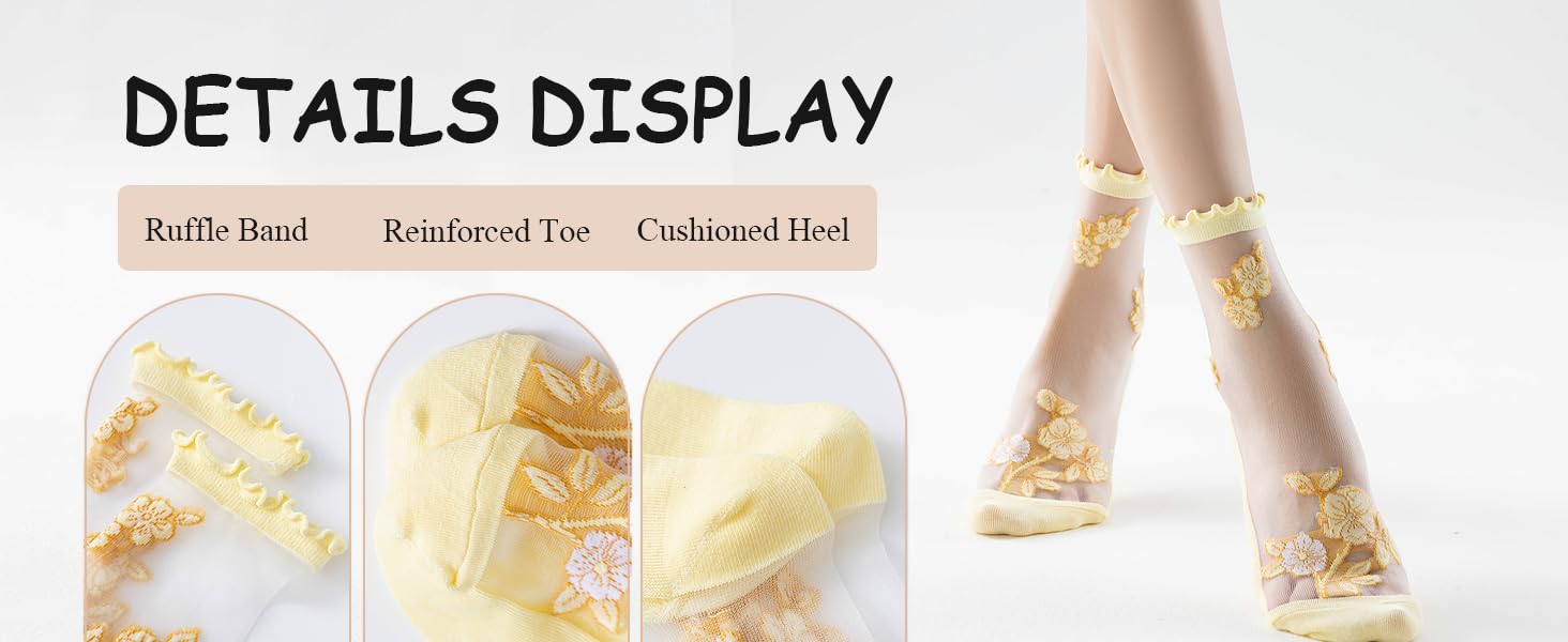 Sheer Ruffle Socks: This nylon sheer mesh socks are unique korean design, fashion,beautiful and elegant. Great for women and girls, eash to match with different styles of outfits and shoes