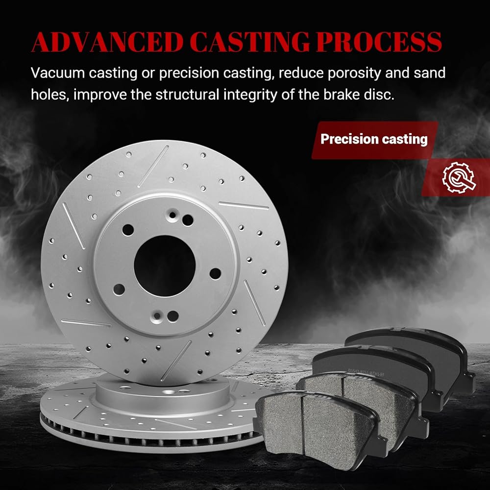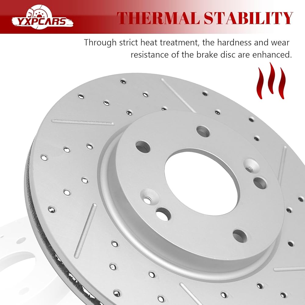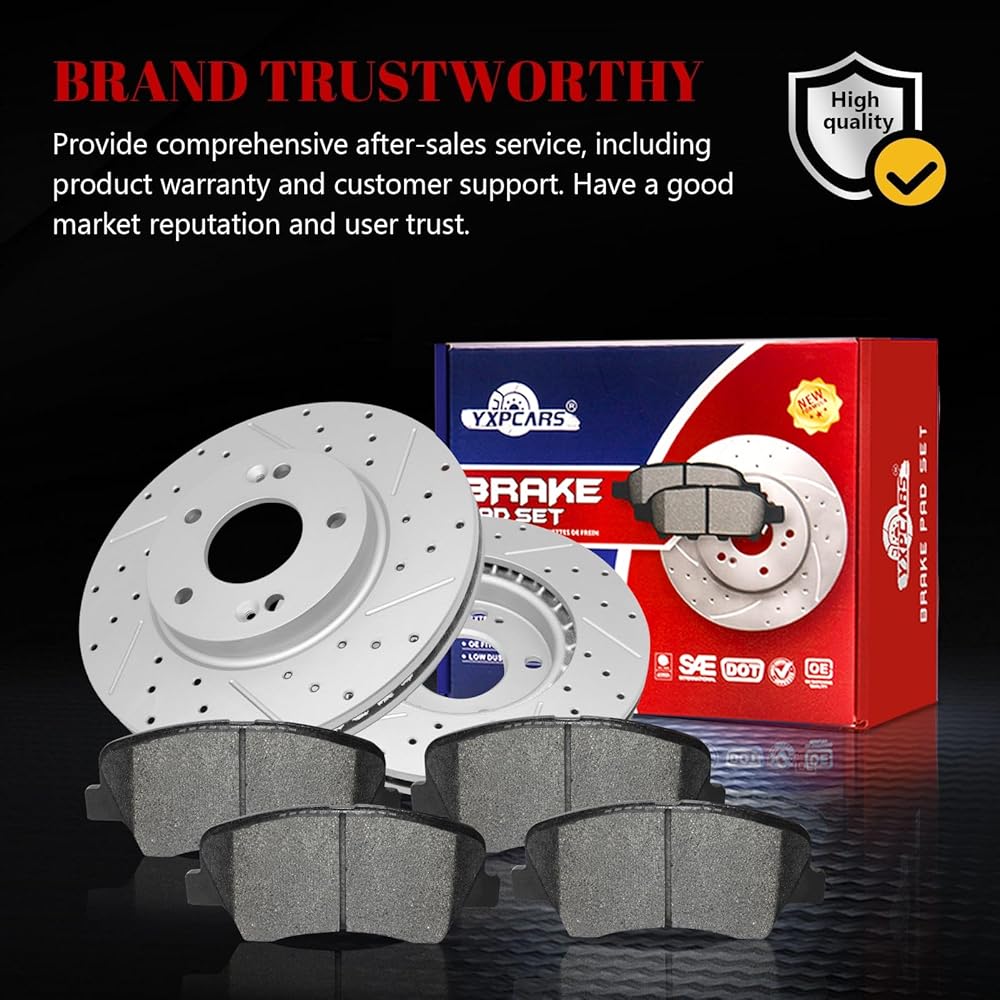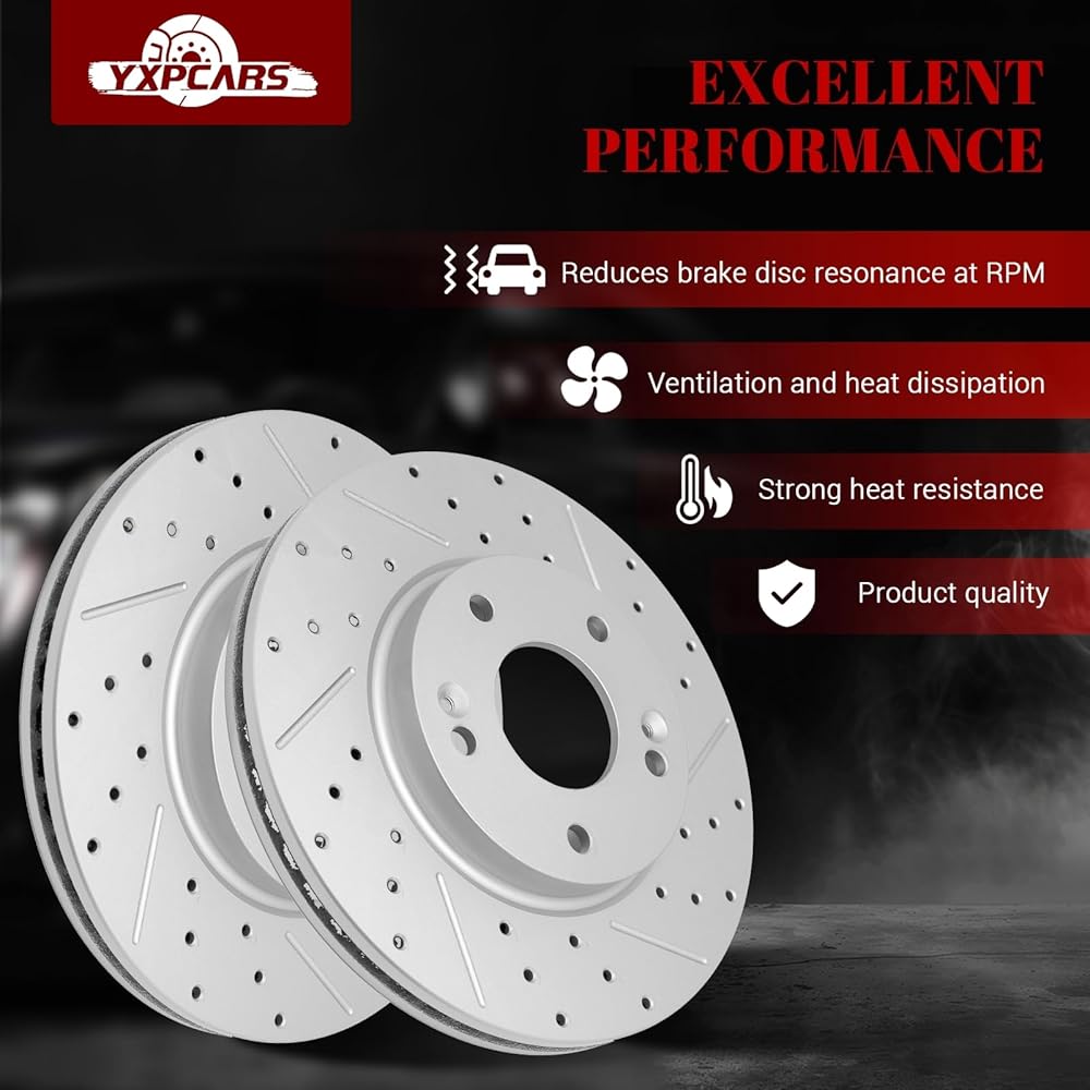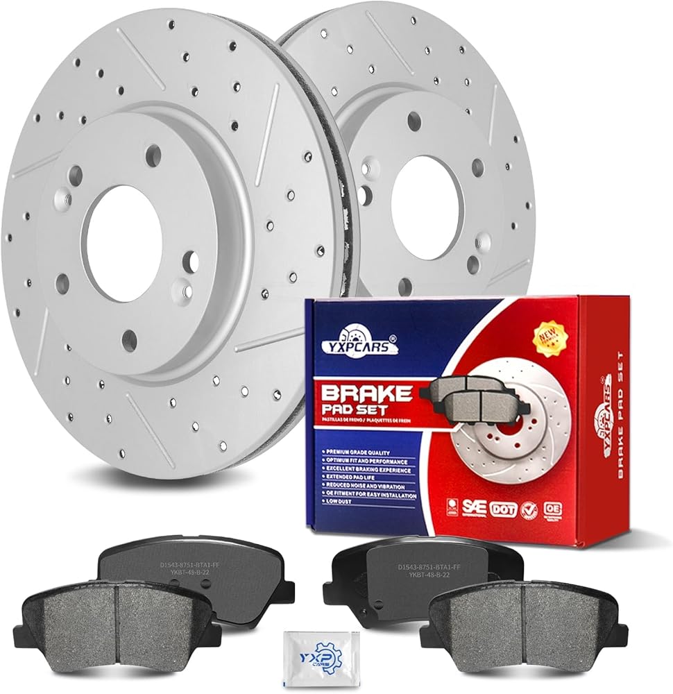 YXPCARS Automotive Replacement Disc Brake Kits--Front Brakes Pad and Drilled Slotted Vented Rotors